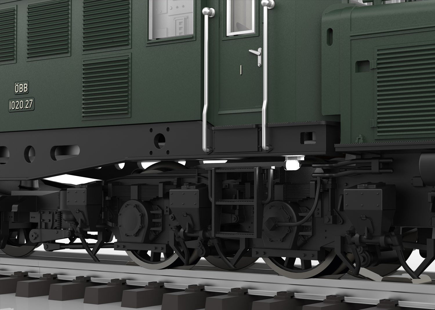 Vorbild: Schwere Güterzug-Elektrolokomotive Reihe 1020 (ex BR E 94) der Österreichischen Bundesbahnen (ÖBB). Tannengrüne Grundfarbgebung. Lok-Betriebsnummer 1020.27. Betriebszustand um 1955.