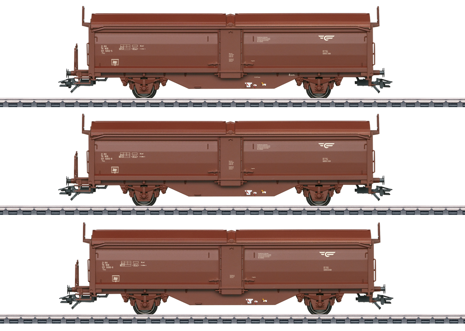 Vorbild: 3 zweiachsige Schiebedach-/Schiebewandwagen der Bauart Tbis der Norwegischen Staatsbahnen (NSB). Alle Wagen in kastanienbrauner Grundfarbgebung. Jeweils mit stirnseitiger Bremserbühne. Schiebetüren in gewölbter Ausführung. Betriebszustand um 1988. Modell: Stirnseitig angesetzte hochliegende Bühnen und Aufstiegsleitern. Zusätzlich auf einer Stirnseite angesetzte Bremserbühne. 2-teiliges Wagen-Dach aus Metall jeweils zum Öffnen. Alle Wagen mit unterschiedlichen Betriebsnummern und einzeln verpackt. Zusätzliche Umverpackung. Gesamtlänge über Puffer 50 cm. Gleichstromradsatz je Wagen E700580.