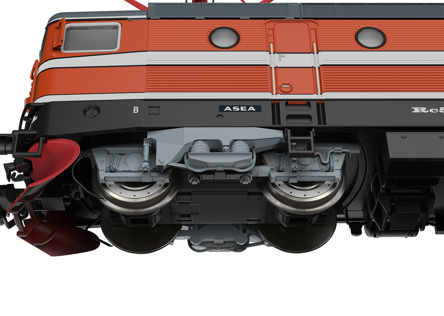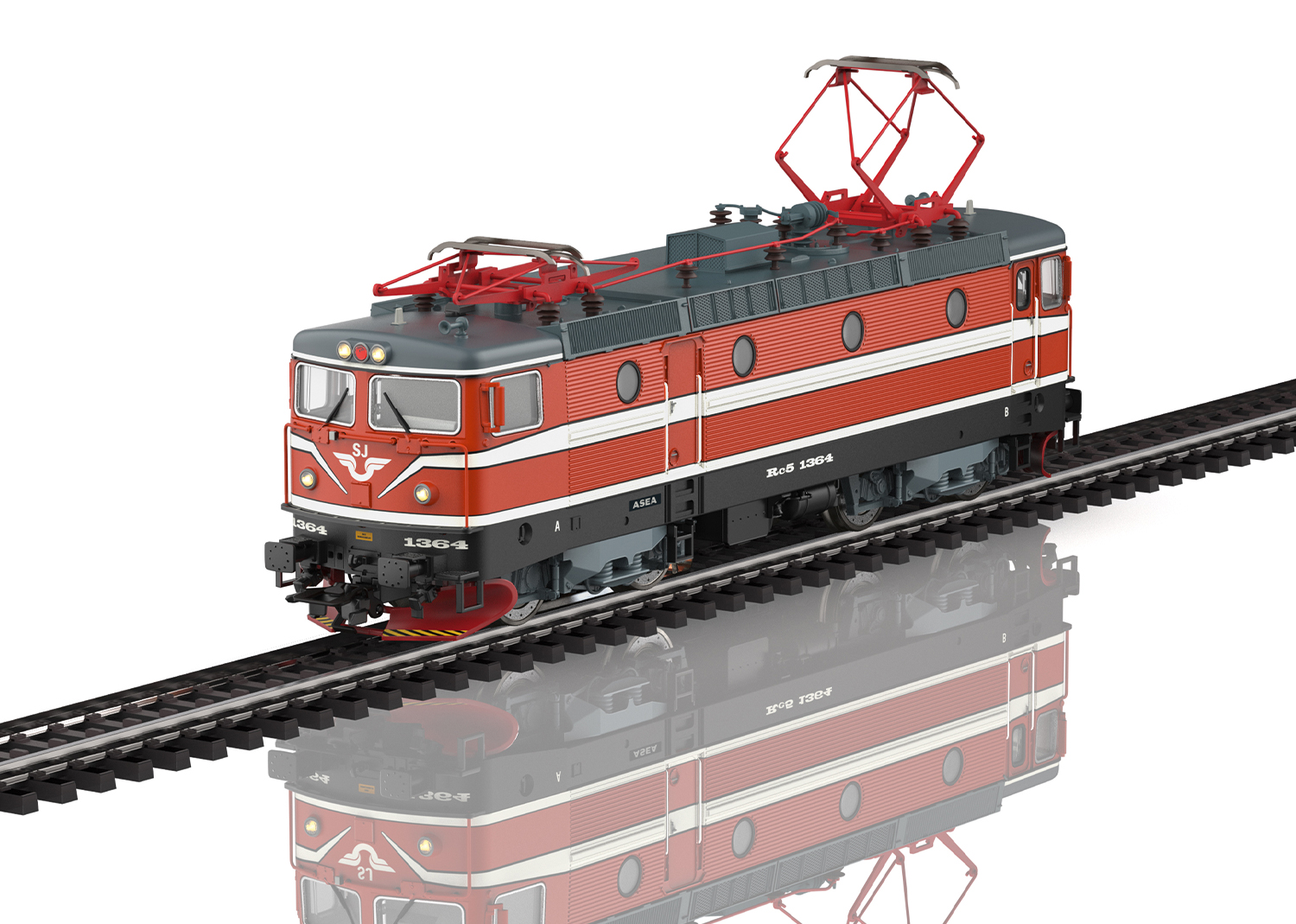 Vorbild: Elektrolokomotive Rc 5 der Schwedischen Staatsbahnen (SJ). Ausführung in oranger Grundfarbgebung mit Scherenstromabnehmern. Betriebszustand ab 1990.