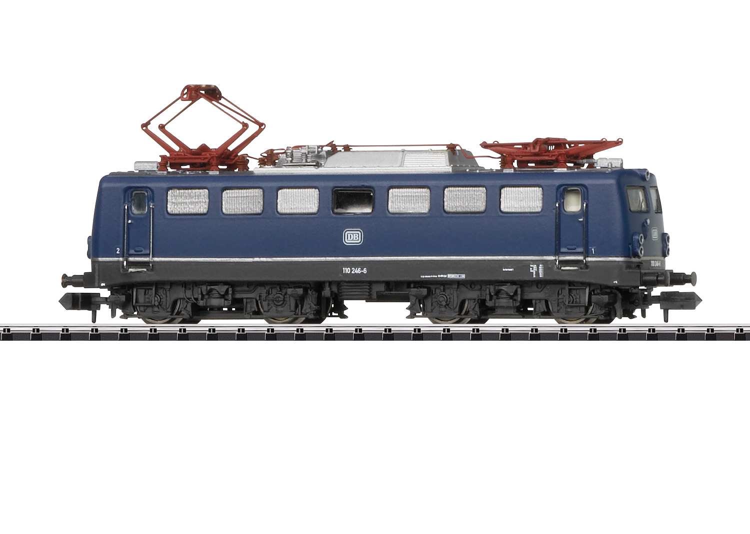 Vorbild: Einheits-Elektrolokomotive 110 246-6 der Deutschen Bundesbahn (DB). Kobaltblaue Grundfarbgebung. Ausführung mit Doppellampen, Kunststoffregenrinnen über den Frontfenstern und Führerstandstüren, Doppeldüsenlüftergitter (DDL), ungeteiltes Maschinenraumfenster mit Gummidichtung und stirnseitige Handgriffe. Zustand um 1988. Einsatz: Güter- und Personenzüge des Nah- und Fernverkehrs.