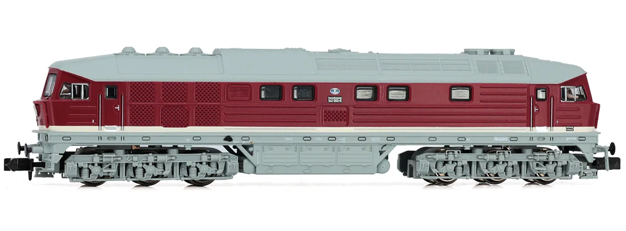 Arnold HN2600 DR, sechsachsige Diesellokomotive 142 002-5 in roter Farbgebung mit grauem Dach, Ep. IV
