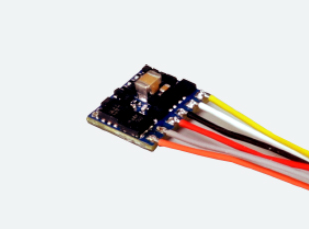 Der LokPilot 5 Fx micro und sein „Zwilling“ LokPilot 5 Fx micro DCC ist ein extrem kleiner Funktionsdecoder mit einer Grundfläche von nur 8,0mm x 7,0mm und einer Dicke von nur 2.4mm (am Kondensator: 2,9mm). Er kommt in allen Fahrzeugen der Nenngrössen N bis H0 zum Einsatz, die keinen Motorausgang haben, aber dennoch Lichteffekte schalten können sollen.