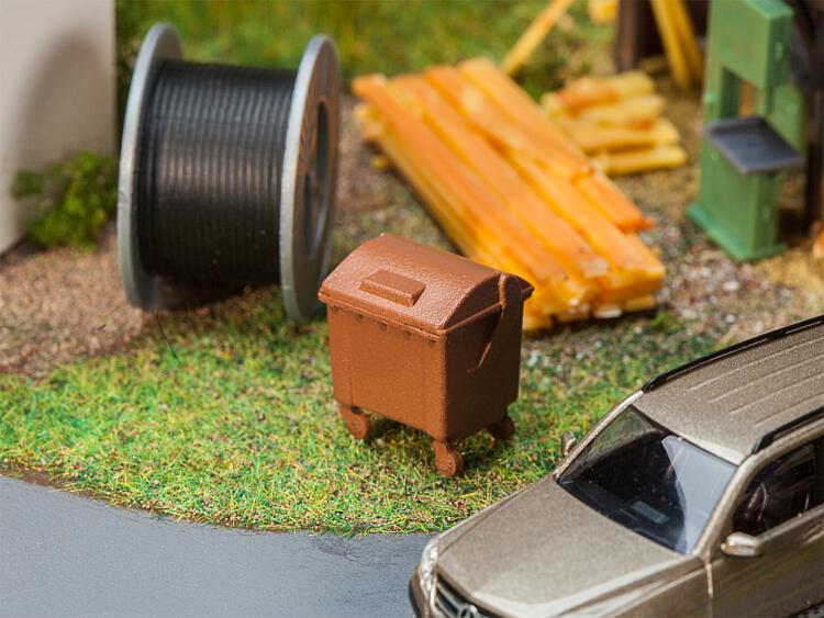 Mobile Preview: Faller 180960 H0 2 Braune Mülltonnen