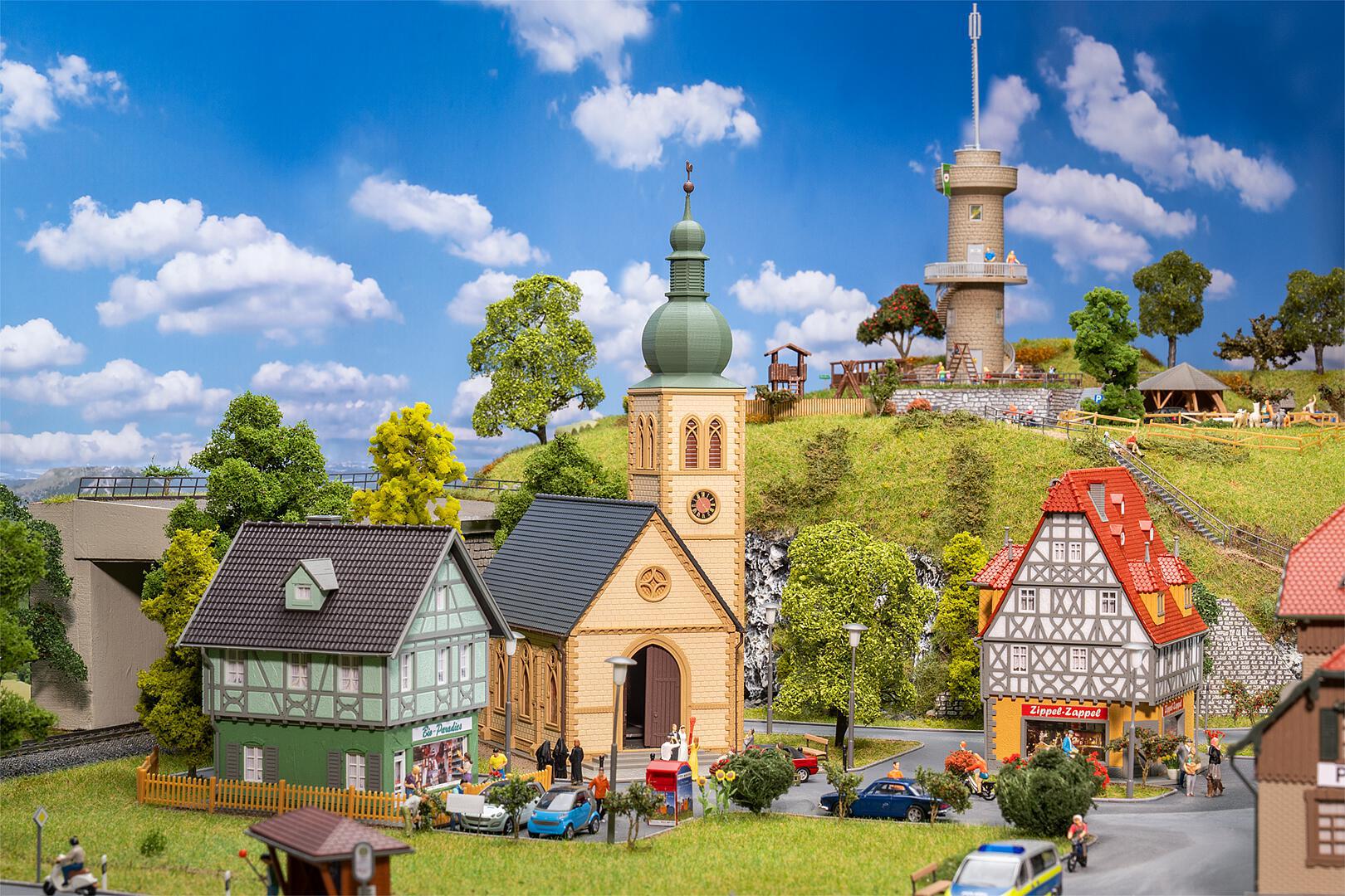 Dieses bezaubernde Set entführt in eine idyllische Modellwelt voll malerischem Charme. Es beinhaltet eine typisch ländliche Kirche mit kunstvollen Buntglasfenstern und einer verspielten Turmspitze (zwei enthalten, austauschbar) sowie zwei farbenfrohe Fachwerk-Geschäfte: Einen Bio-Laden in sanften Mint-Tönen und ein lebhaft gelbes Spielwarengeschäft. Tauche ein in die ruhige und einladende Atmosphäre des Landlebens und genieße die zauberhaften Szenen dieses Miniatur-Dorfes! Inhalt: Kirche mit austauschbarer Spitze, zwei Turmspitzen, Spielwarengeschäft, Bio-Laden