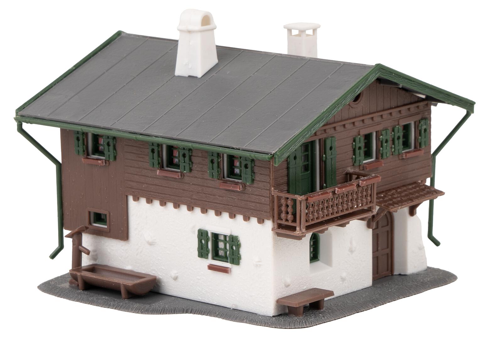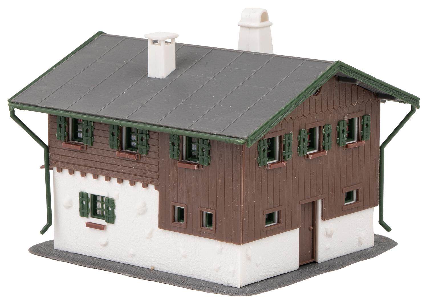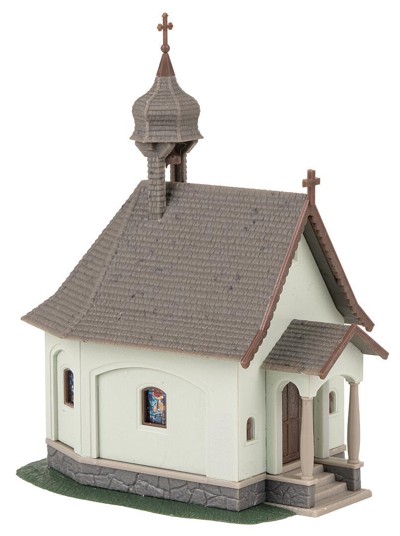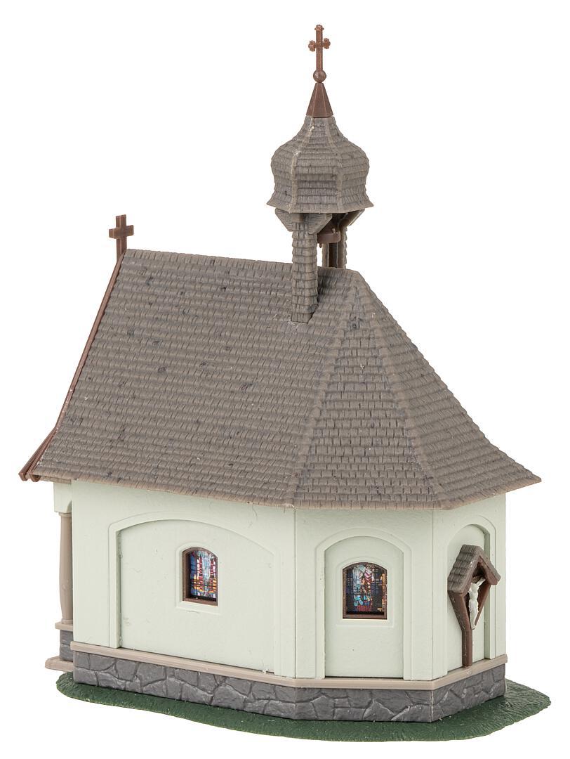 Winterstimmung im Modell! Ensemble aus zwei zweistöckigen Alpenhäusern sowie einer Kapelle mit überdachtem Portal und Glockenturm. Im Bausatz enthalten sind außerdem unterschiedlich große Eiszapfen und eine Materialzusammenstellung für die Herstellung einer glitzernden Schneemasse sowie eine ausführliche Anleitung für die Gestaltung einer Winterlandschaft. Inhalt: 2 Alpenhäuser, Kapelle, 3 Beleuchtungssockel, Eiszapfen, Schneepulver, weiße Farbe