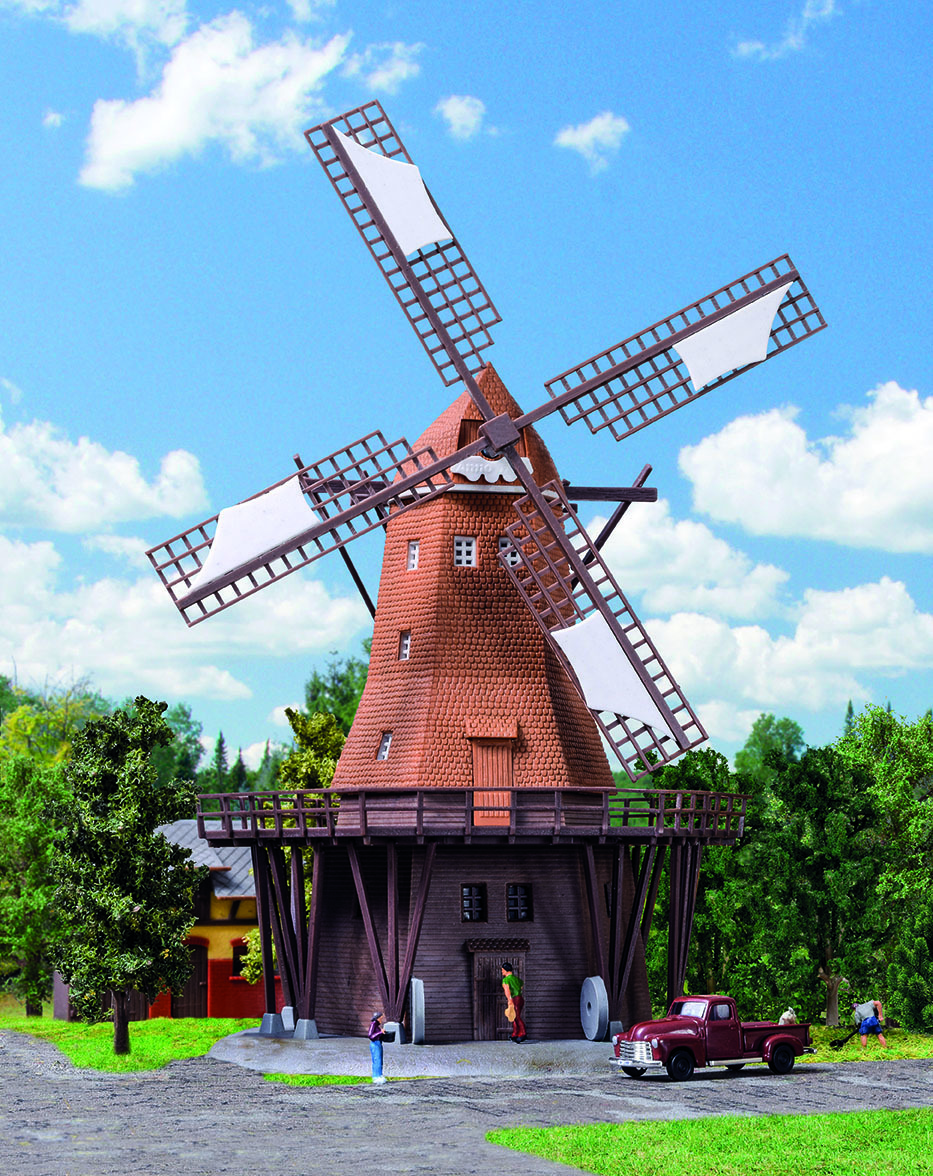 Bausatz. Dieses Modell ist der Nachbau der letzten Windmühle auf der Insel Fehmarn. Die Windmühle wurde 1787 als Grütz- und Graupenmühle errichtet und mit Windsegeln betrieben. Für das Kornmahlen hat sie heute ausgedient und wurde ab 1961 als Mühlenmuseum eingerichtet. Bei dieser Mühle dreht sich nur die Kappe mittels eines dreieckigen Sterts, nicht mehr das ganze Mühlenhaus, um die Mühlenflügel in unterschiedliche Windrichtungen auszurichten. Die gesamte Umkleidung des Mühlenrumpfes zeigt hölzerne Schindelplatten, die im Modell einen besonders gelungenen Kontrast zu den filigranen Flügeln ergeben. Maße: L 9 x B 9 x H 16 cm. Schwierigkeitsgrad: 2 (Fortgeschrittene).