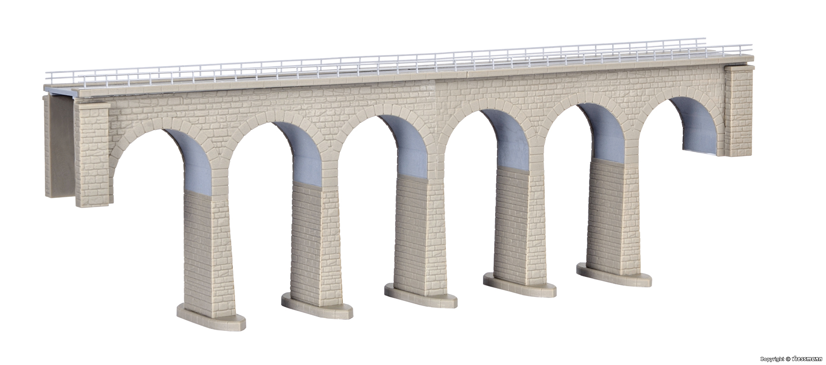 Bausatz. In doppelter Ausführung ist ein zweigleisiger Aufbau möglich. Für alle gängigen Gleissysteme und Spur Z geeignet. Die Viaduktteile sind auch einzeln verwendbar. Dazu passt der Mittelpfeiler Art. 37673 und die Viadukt-Brückenköpfe Art. 37672. Bei der Verwendung mit Oberleitung empfehlen wir die Oberleitungsmastenträger Art. 37676. Mit einem 2. Bausatz ist das Viadukt beliebig verlängerbar.
