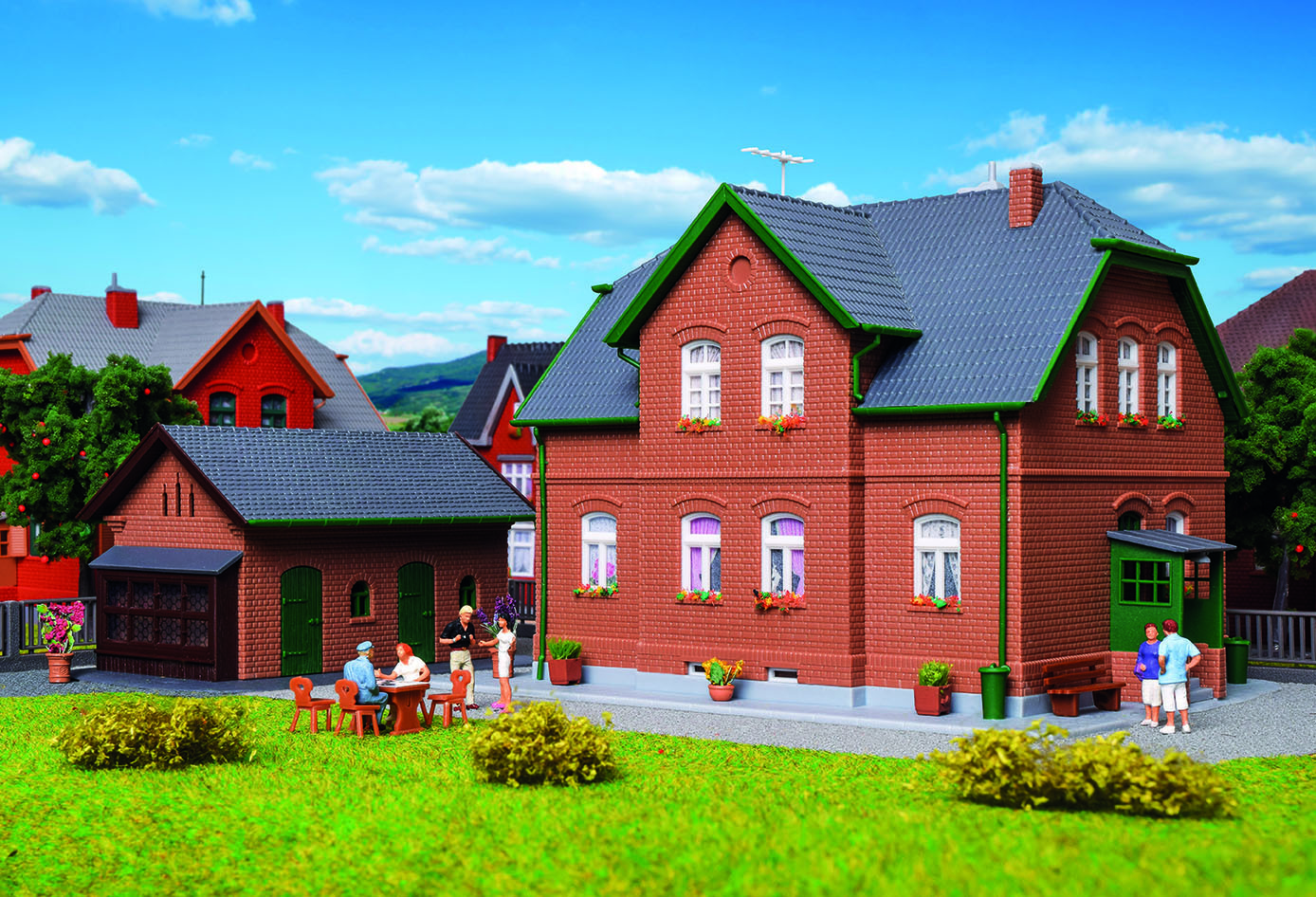 Bausatz. Das Nebengebäude beherbergt einen Taubenschlag mit Ausflugsluke auf dem Dach. Maße Haupthaus: L 16 x B 13,5 x H 12,5 cm. Nebengebäude: L 11 x B 7 x H 6 cm. Schwierigkeitsgrad: 2 (Fortgeschrittene).
