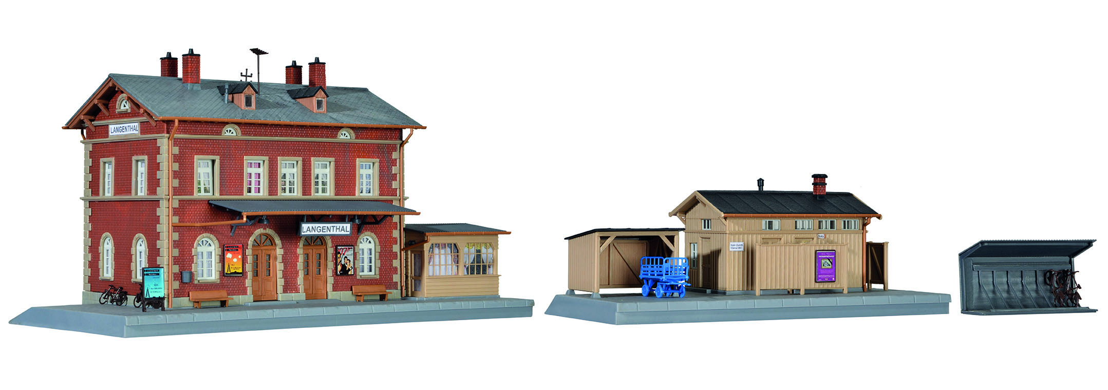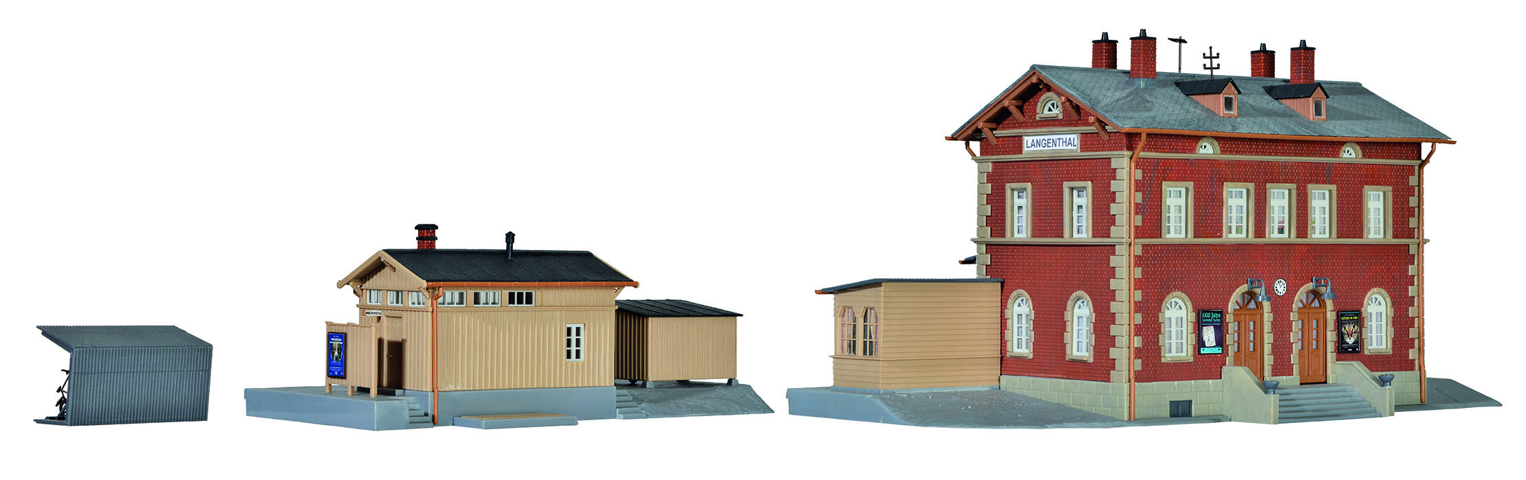 Bausatz. Das durch seine kompakten Abmessungen auch für kleine und mittlere Anlagen interessante Gebäude wurde dem großen Vorbild bis hin zu vielen Einzelheiten detailgetreu nachempfunden. Der Baustil dieses Bahnhofs kann jenen Bauten zugeordnet werden, die in ganz Deutschland und über die Grenzen hinaus vor und um die Wende zum 20. Jahrhundert entstanden sind. L 43,0 x B 14,0 x H 15,0 cm Schwierigkeitsgrad: 2 (Fortgeschrittene)