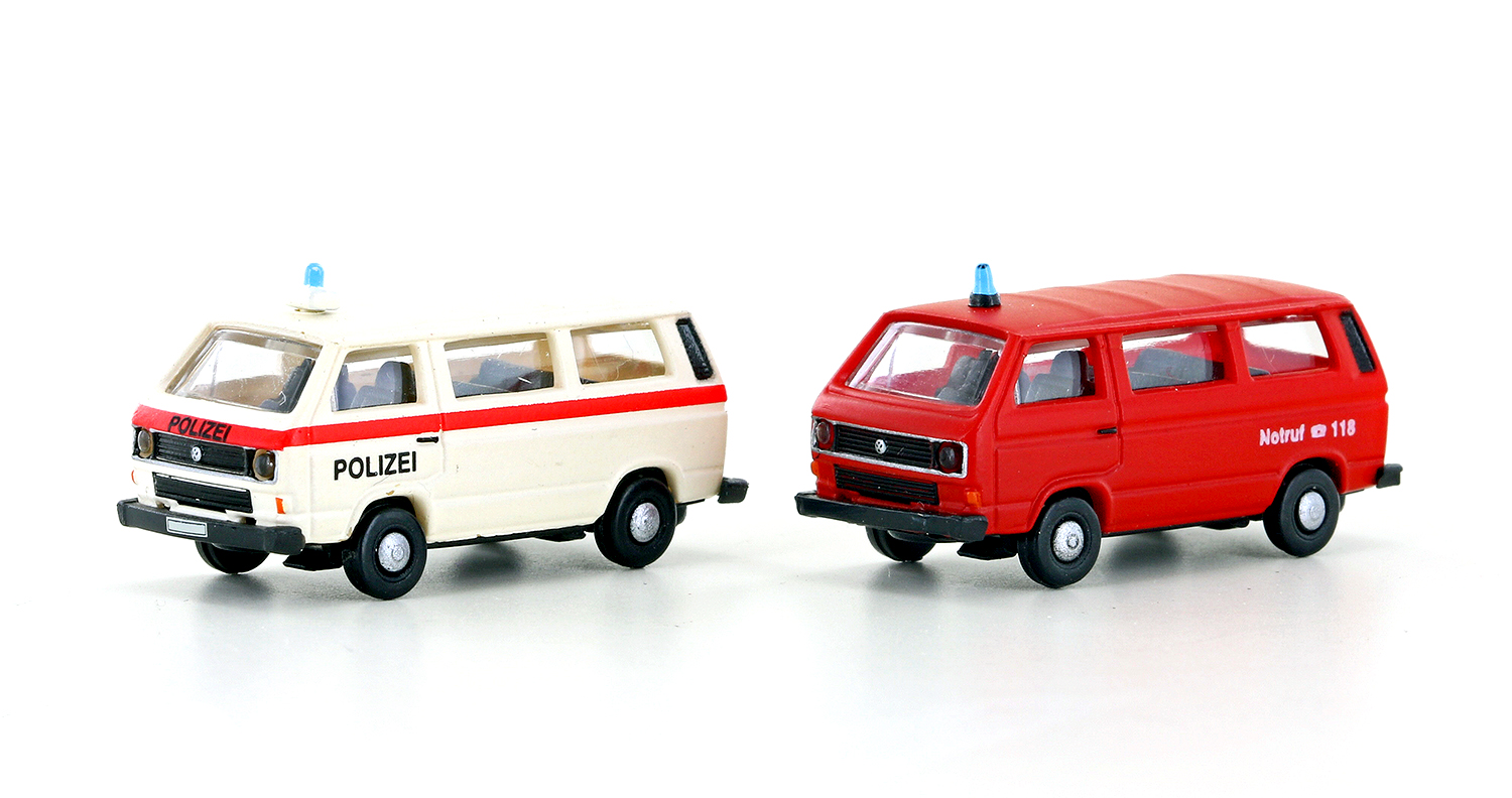 Lemke Minis LC4335 2TLG. SET VW T3 POLIZEI FEUERWEHR CH