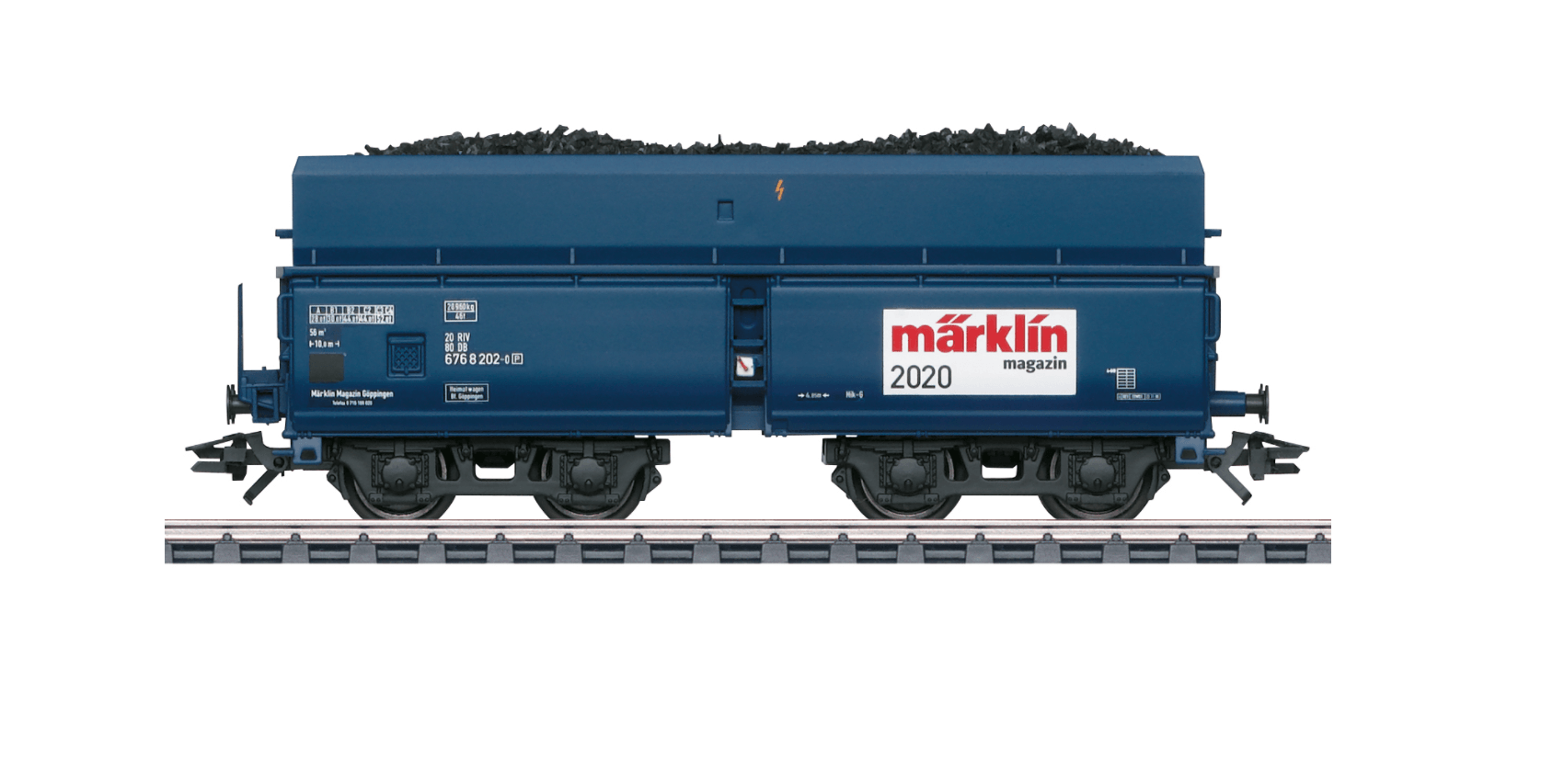 Vorbild: Vierachsiger, offener Selbstentladewagen der Bauart Fad 163 (ehemaliger OOt 43 / Erz IId). Privatwagen des Märklin Magazins Göppingen, eingestellt bei der Deutschen Bundesbahn (DB). Ausführung mit mittelhohem Oberkasten und Bremserbühne. Eingesetzt zum Transport von Kohle. Pressblech-Drehgestelle der Einheitsbauart, ohne eingeschweißtem Unterzug als Verstärkung. Betriebszustand um 1990.