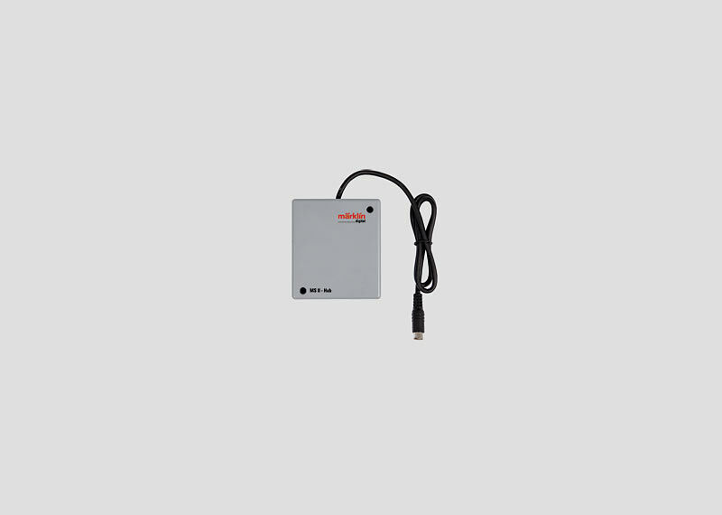 Verteiler zum Anschluss von bis zu maximal 5 MS II an einen Ausgang der Digital-Anschlussbox 60112 bzw. 60114 oder 60113 bzw. 60116. Es kann an jeden Ausgang der Anschlussbox ein MS II-Hub angeschlossen werden. So können bis zu maximal 10 MS II an der Anschlussbox 60112 bzw. 60114 oder 60113 bzw. 60116 betrieben werden. Stromverbrauch von einer MS II liegt bei ca. 50 mA. Abmessungen 96 x 85 x 40 mm. Ein Anschluss dieses Verteilers an der CS2 und CS3/CS3+ ist nicht möglich! Um mehrere MS II an die CS2 bzw. CS3/CS3+ anzuschließen, verwenden sie bitte die Artikel 60125/60145 und 60124.