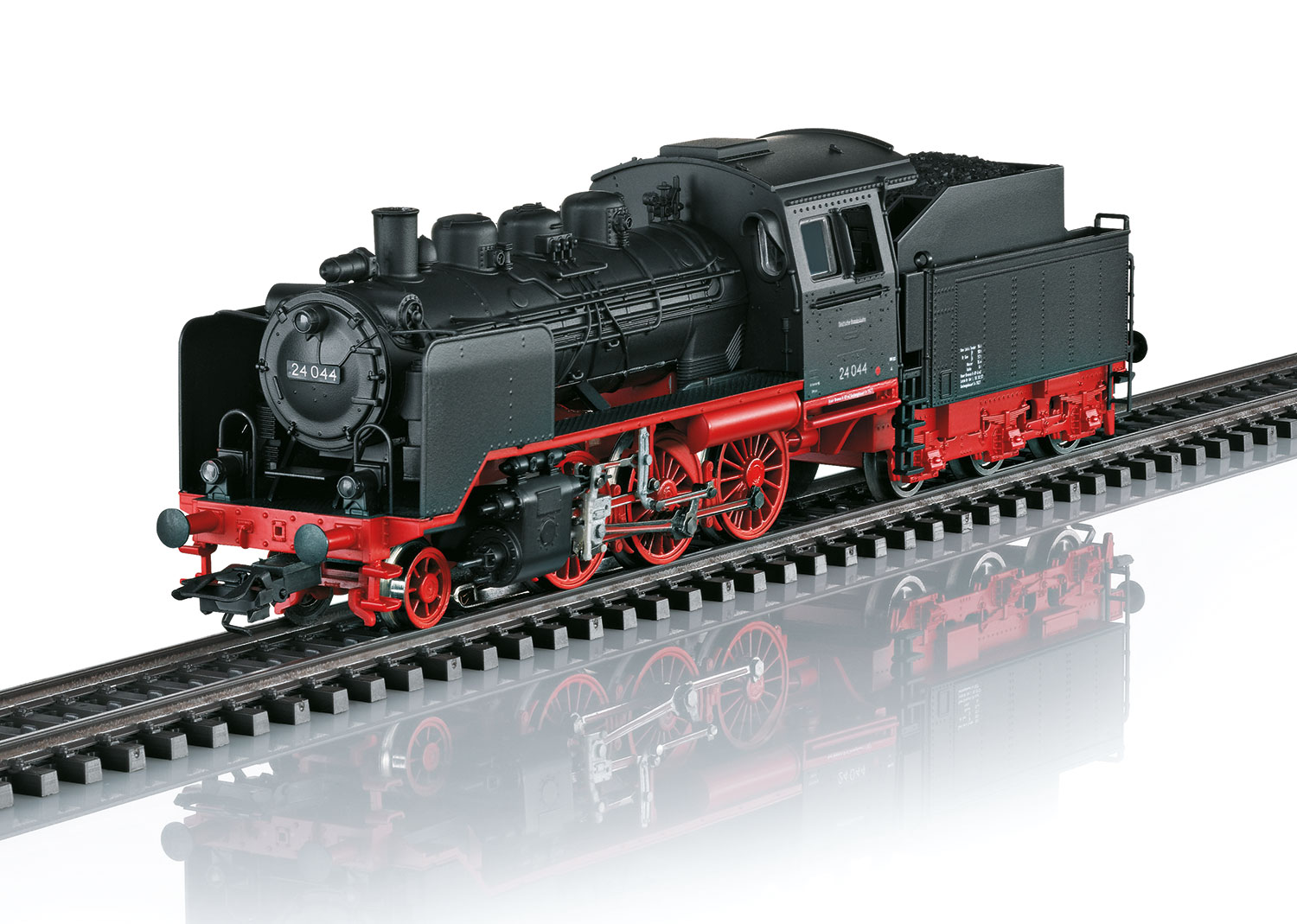 Vorbild: Personenzug-Dampflokomotive mit Schlepptender Baureihe 24 der Deutschen Bundesbahn (DB). Einheitslokomotive mit Wagner-Windleitblechen. Lok-Betriebsnummer 24 044. Betriebszustand um 1957.