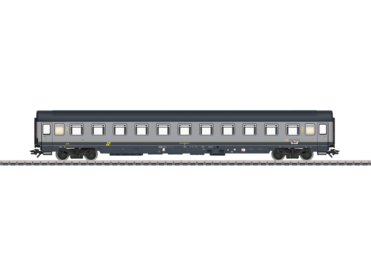 Vorbild: Abteilwagen 2. Klasse Bauart Bz Eurofima der Italienischen Staatsbahn (FS). In „Bigrigio“-Farbgebung. Wagenlauf EC 89 Paganini: München Hbf – Innsbruck – Brennero – Bolzano – Verona. Betriebszustand um 1995.