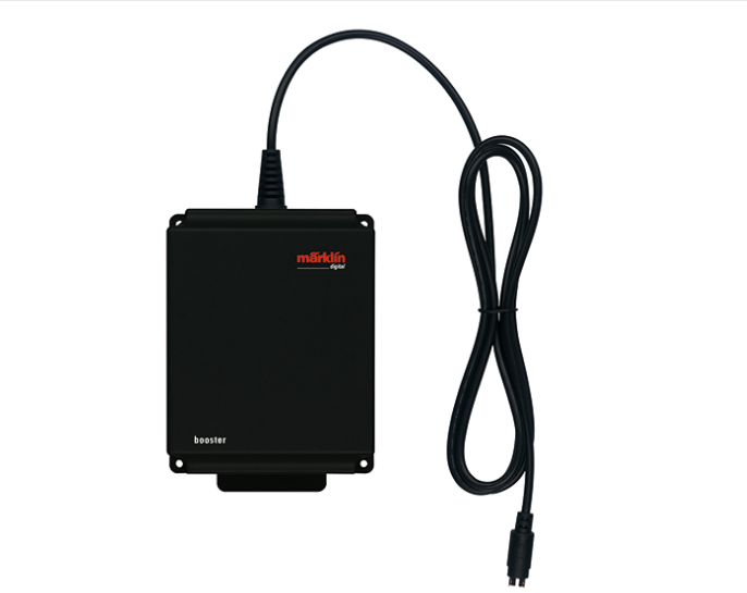 Leistungsverstärker für digital gesteuerte Großanlagen. Multiprotokollfähig in Verbindung mit der Central Station 60216, 60226 sowie 60213-60215. Anschluss über 7-polige Datenbus-Leitung direkt an die Central Station 60216, 60226 sowie 60213-60215. Mehrere Booster in einem System über Terminals 60125/60145 einsetzbar. Automatische Anmeldung an der Central Station 60216, 60226 sowie 60213-60215. Statusanzeige durch LED am Booster und grafisch im Display der Central Station. Bei Verwendung des Schaltnetzteiles 60061 ergibt sich eine maximale Ausgangsleistung von 58 VA und ein maximaler Strom von 3 A (bei 60216, 60226 bzw. 60215 mit Schaltnetzteil 60101 ergibt sich ein maximaler Strom von 5 A, empfohlen auschließlich für die Spur 1. Bitte unbedingt den Kabelquerschnitt größer 0,5 mm² beachten!). Abmessung 150 x 110 x 42 mm.