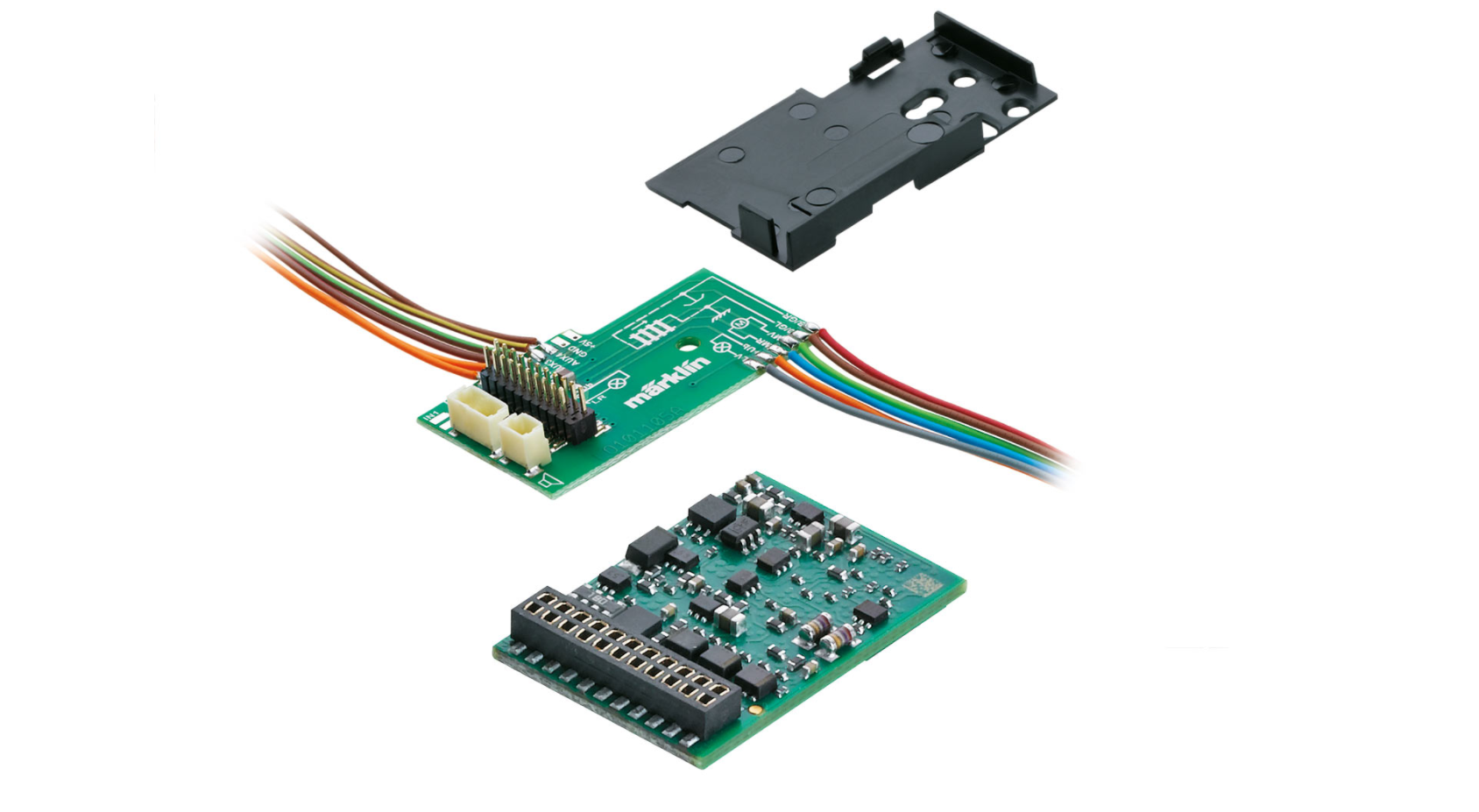 Zum Umrüsten von Märklin/Trix H0 Lokomotiven mit eingebautem Hochleistungsmotor oder anderen Gleichstrommotoren. Der märklin LokDecoder3 besitzt eine 21 polige Schnittstelle und dazu passend eine Schnittstellenplatine zum Nachrüsten von analogen und digitalen Lokomotiven. Der märklin LokDecoder3 unterstützt die Digitalformate mfx, MM1, MM2 und DCC.