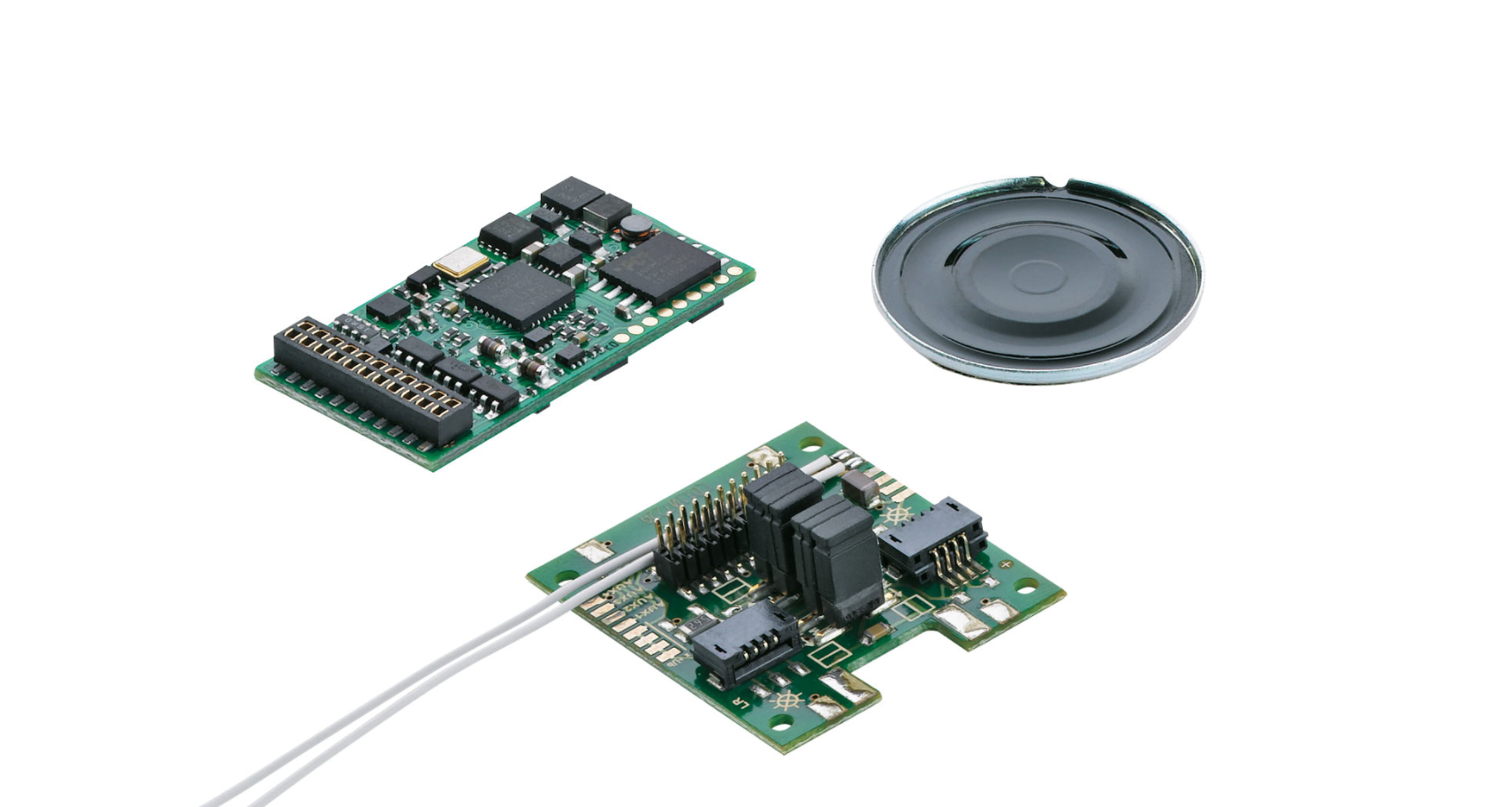 Zum Umrüsten von Märklin/Trix H0 Hobby-Lokomotiven der 36er-Serie. Der märklin SoundDecoder3 besitzt eine 21-polige Schnittstelle und dazu passend eine Schnittstellenplatine für Drehgestell-Lokomotiven der 36er-Serie. Der märklin SoundDecoder3 unterstützt die Digitalformate mfx, MM 1, MM2 und DCC. Voreingestellter Sound einer Elektrolokomotive (TRAXX).