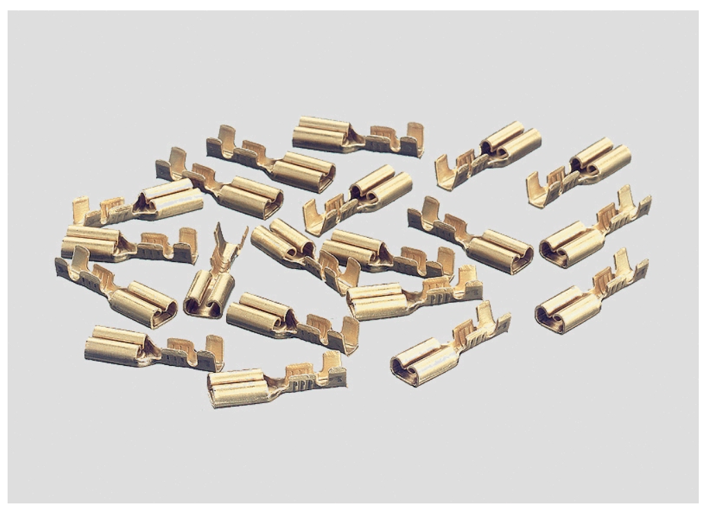 Passend zu den Kontaktzungen des C-Gleises. Für alle Märklin-Kabel von 0,19 mm² bis 0,75 mm² Querschnitt. Inhalt 20 Stück.