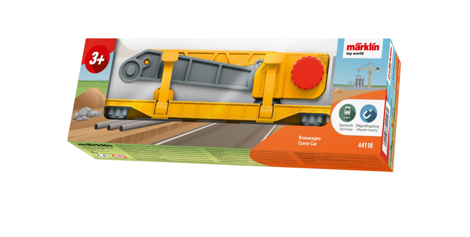 Drehbarer Kran mit Handkurbel und Magnet. Magnetische Verladebox zum Absetzen und wieder Anheben. 4 stabile Verladestützen zum stabilisieren. Kranarm und Verladestützen für die Fahrt einklappbar.