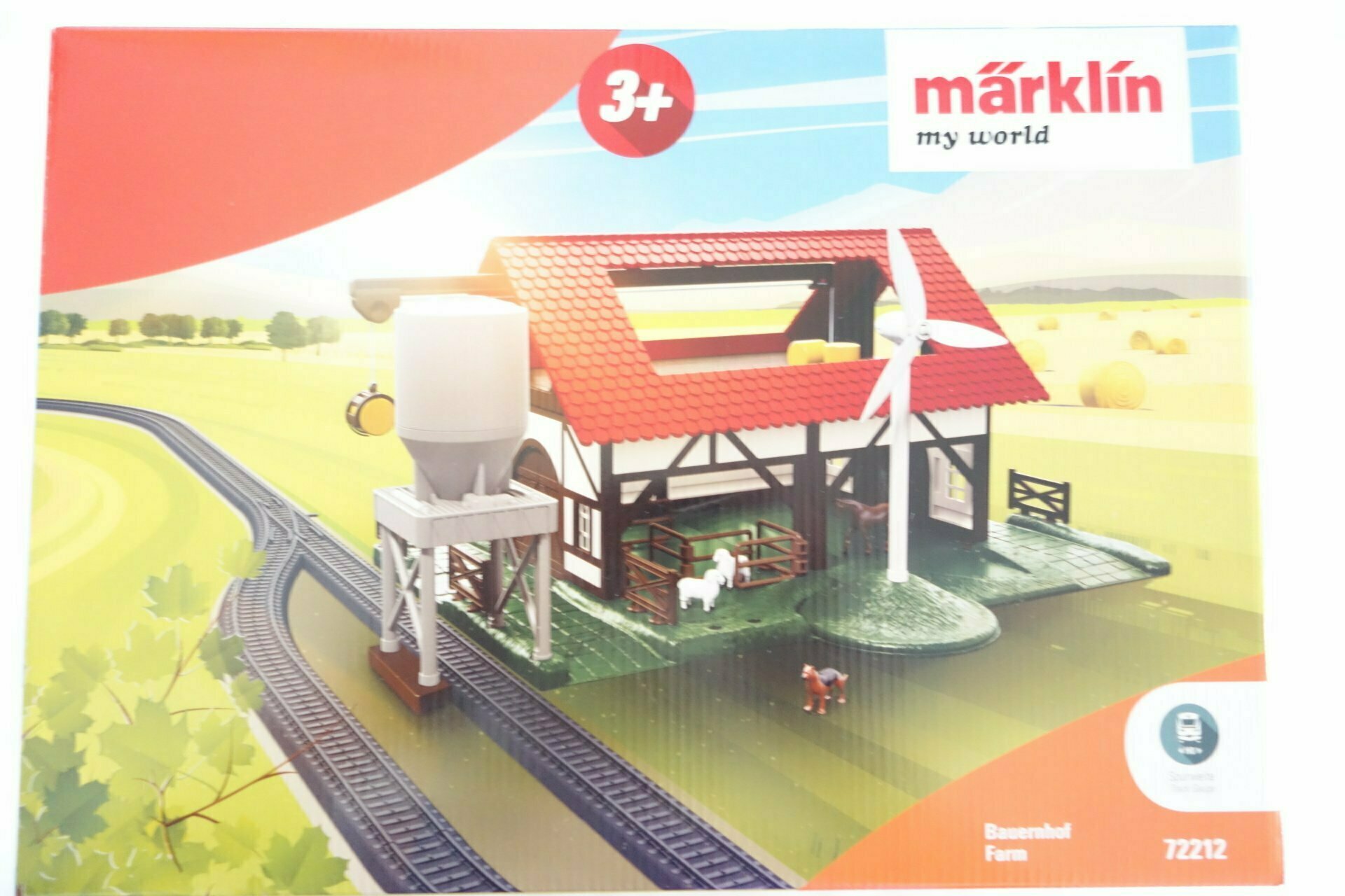 - • Bauernhof mit Tierfiguren, Ställen, Strohballen und einem Futtersilo zum Beladen von Güterwagen