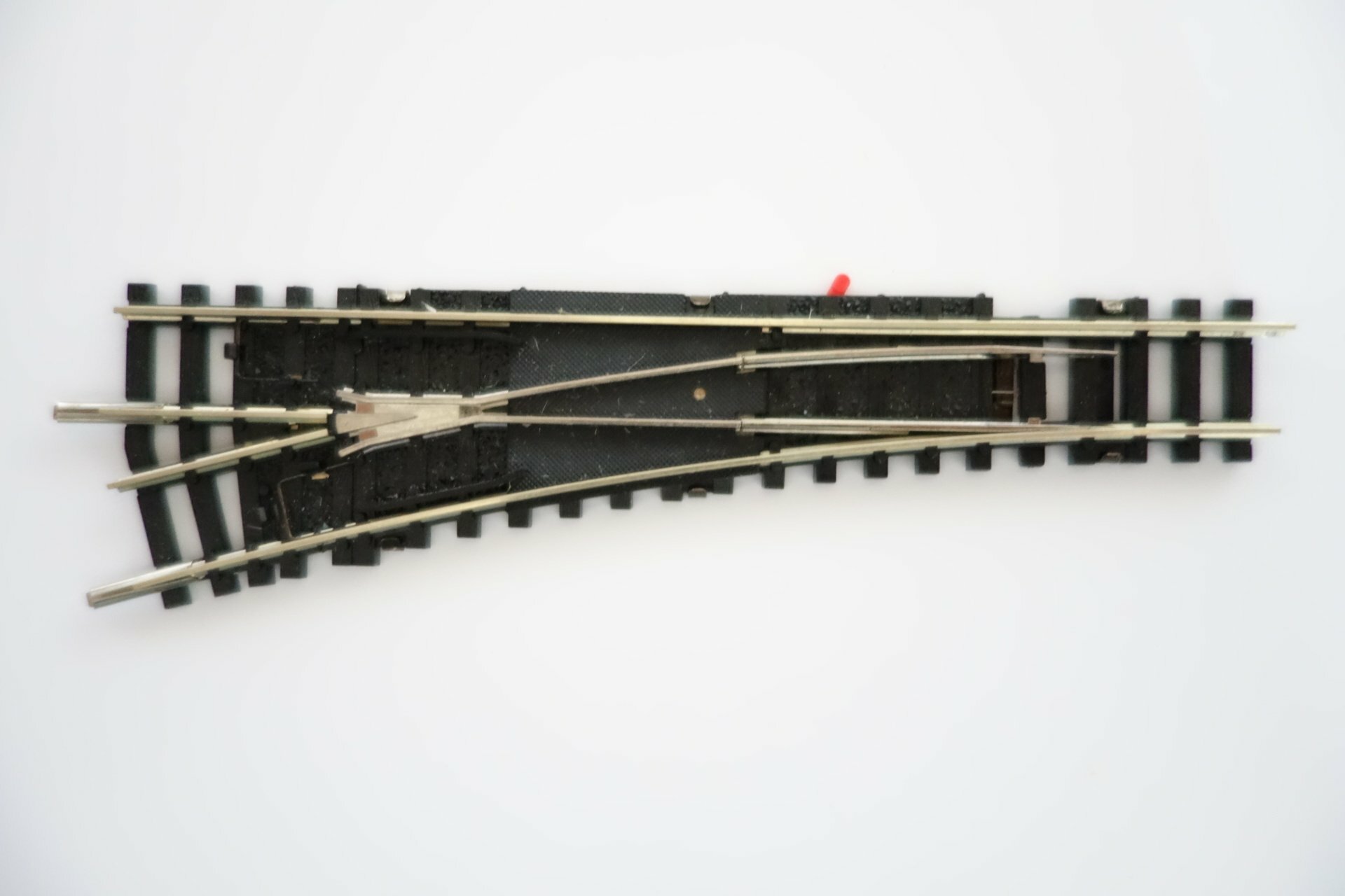 Weichen - 15° mit polarisiertem Herzstück Gerades Gleis |< 112,6 mm >|.