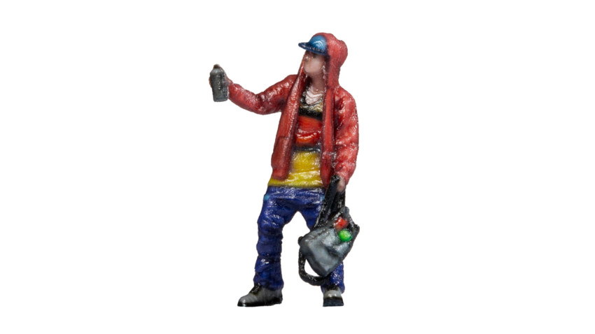 Einzelfigur Graffiti Sprayer in farbigem 3D-Druck