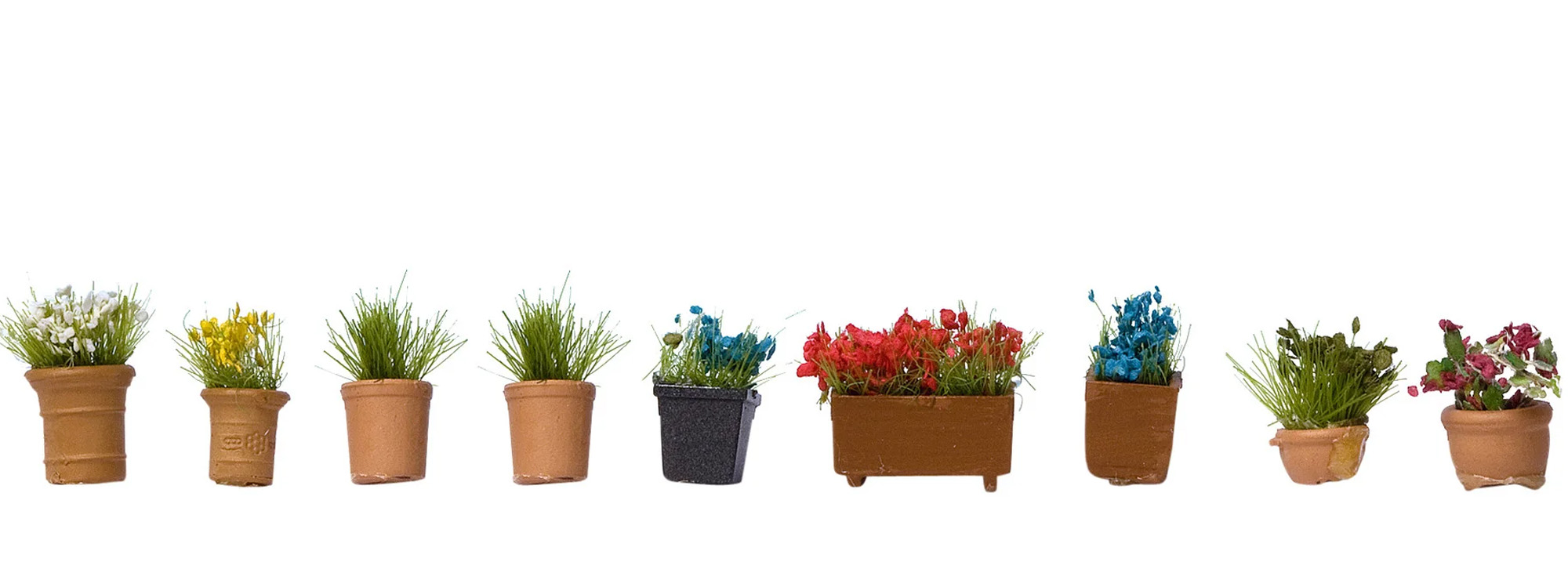 NOCH 14084 Blumen in kleinen Blumentöpfen, 9 Stück LaserCut minis im Set im Maßstab 1:160 für Spurweite N