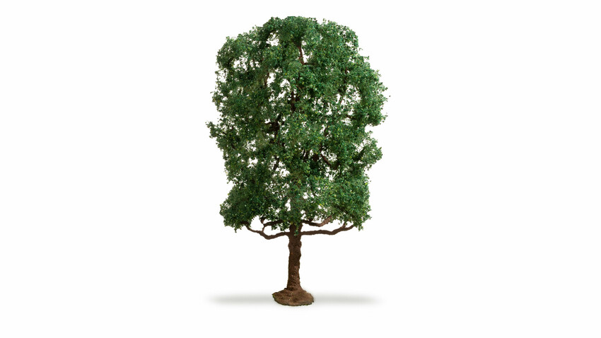 Die NOCH Master-Baum-Serie präsentiert stolz die Kastanie in einer beeindruckenden Höhe von 19 cm. Dieser Baum, der oft in europäischen Alleen und Parklandschaften zu finden ist, wurde mit größter Sorgfalt und Detailtreue für den Modellbau nachgebildet. Durch bis zu 40 handverarbeitete Drähte wird das charakteristische, weit verzweigte Astwerk der Kastanie meisterhaft dargestellt. Die natürlich anmutende Färbung kombiniert mit den unverwech selbaren handgefertigten Blättern – groß, gezackt und in einem markanten Grün – lässt das Modell fast lebendig erscheinen.