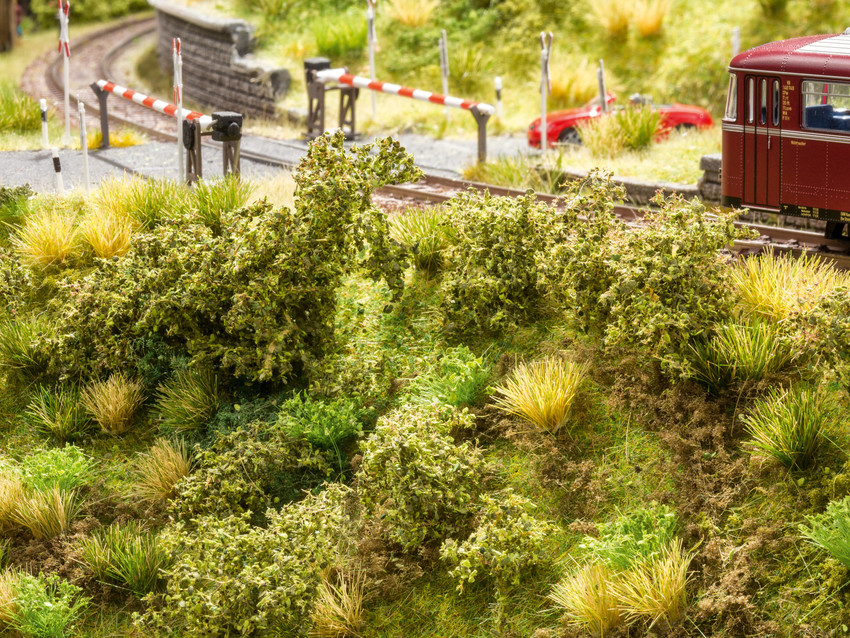 Der "Bahndammbewuchs" eignen sich ideal für jede Modelllandschaftsszene die wirklichkeitsgetreu wie nie zuvor nachgestalte werden soll. Der NOCH "Bahndammbewuchs" eignet sich ideal, um realistischen Bahnszenen noch individueller und naturgetreuer nachzugestalten. Ein Naturprodukt, das ideale Eigenschaften mitbringt: kein Rohling gleicht dem anderen. Kleine, gebrochene Rohlinge lassen sich direkt als vertrocknete oder abgestorbene Bodendecker, wie sie an jedem Bahndamm zu finden sind, einsetzen. Stärkere Seeschaum-Teile können, als abgebrochene Äste, nach Wunsch dekoriert werden. Größere, fülligere Seeschaum- Rohlinge werden einfach mit dem im Set enthaltenen Flock-Material belaubt. So entstehen äußerst realistische Büsche. Verwenden Sie diese realistisch nachempfundenen Bewuchs auch für Ihre Landschaftsszene und setzten Sie hochwertige Highlights.