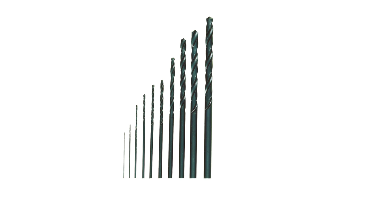 Technische Daten: Bohrer und Schaft: Ø 0,3 - 0,5 - 0,8 - 1,0 - 1,2 - 1,5 - 2,0 - 2,5 - 3,0 - 3,2 mm; 10-teilig