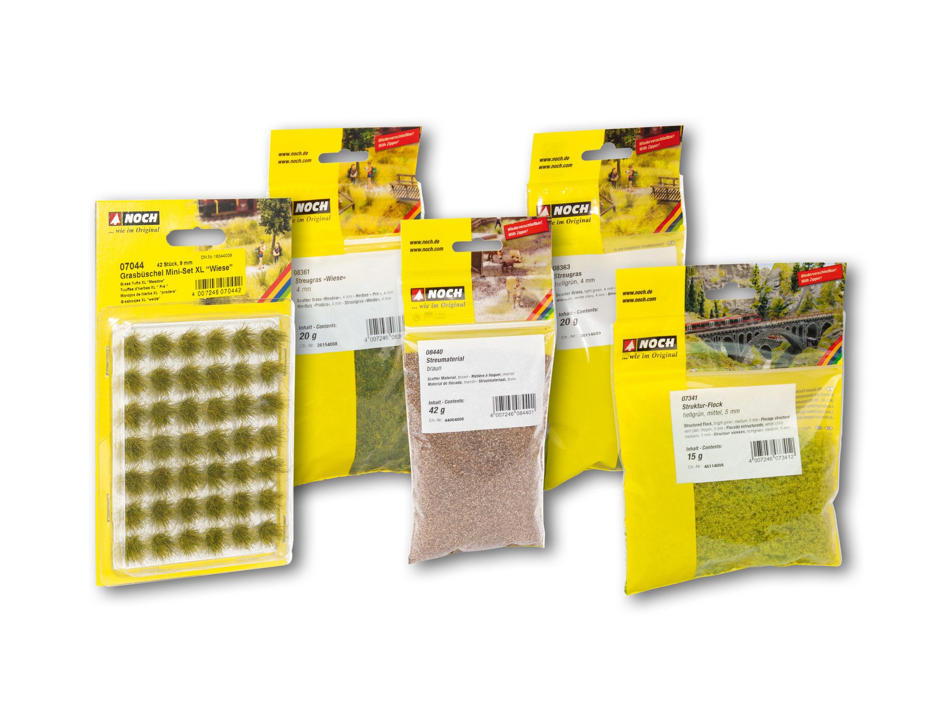 Mit einer immer größer werdenden Produktpalette fällt es machmal schwer sich zu entscheiden, welche Farben und Materialien es beim ausgestalten der Anlage werden sollen. Um Ihnen die Entscheidung zu erleichtern und Ihnen die richtigen NOCH Materialien für die verschiedenen Anwendungen zu empfehlen haben sich unsere Modellbauer die Mühe gemacht und spezielle Vegetations-Startsets für Sie zusammengestellt. Darin ist jeweils eine Auswahl der zu den verschiedenen Themen passenden Produkte enthalten. So können Sie direkt loslegen und die Wirkung und Anwendung der Materialien erfahren.
