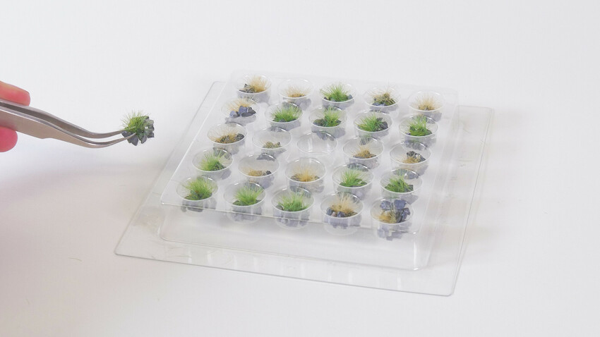 Um die Büschel einzeln aufzukleben, eignet sich der NOCH Landschaftsbau-Kleber (Art.-Nr. 61133). Wenn Sie die Büschel z. B. in eine Wiese integrieren möchten, können Sie diese auch in den zuvor