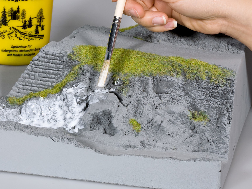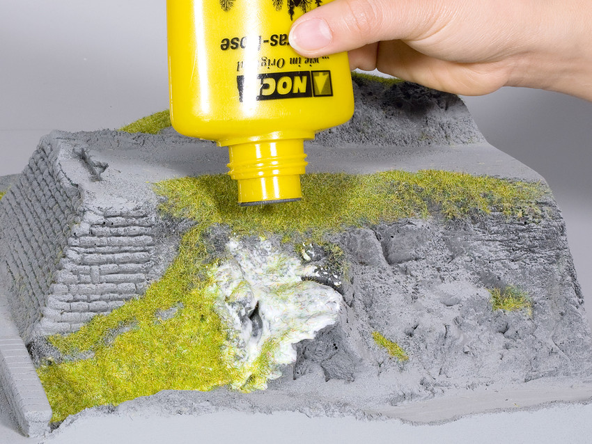 Hinweis: Zum Weiterbasteln gibt es im NOCH Sortiment Gras-Kleber und Streugräser in vielen verschiedenen Farbtönen.