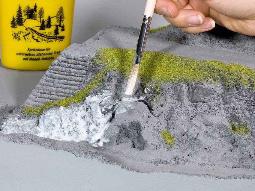 Was ist das Besondere an der Bodendecker-Foliage? Auf einer antihaftend ausgerüsteten Trägerfolie werden verschiedene Gräser und Flockmaterialien elektrostatisch aufgeflockt. Dank des speziellen, dauerflexiblen Klebstoffs, kann die Foliage mühelos von der Trägerfolie angezogen werden. Anschließend wird die Bodendecker-Foliage als Ganzes oder in Teilen in die Modell-Landschaft eingearbeitet. Zum Verkleben empfehlen wir den Landschaftsbaukleber.