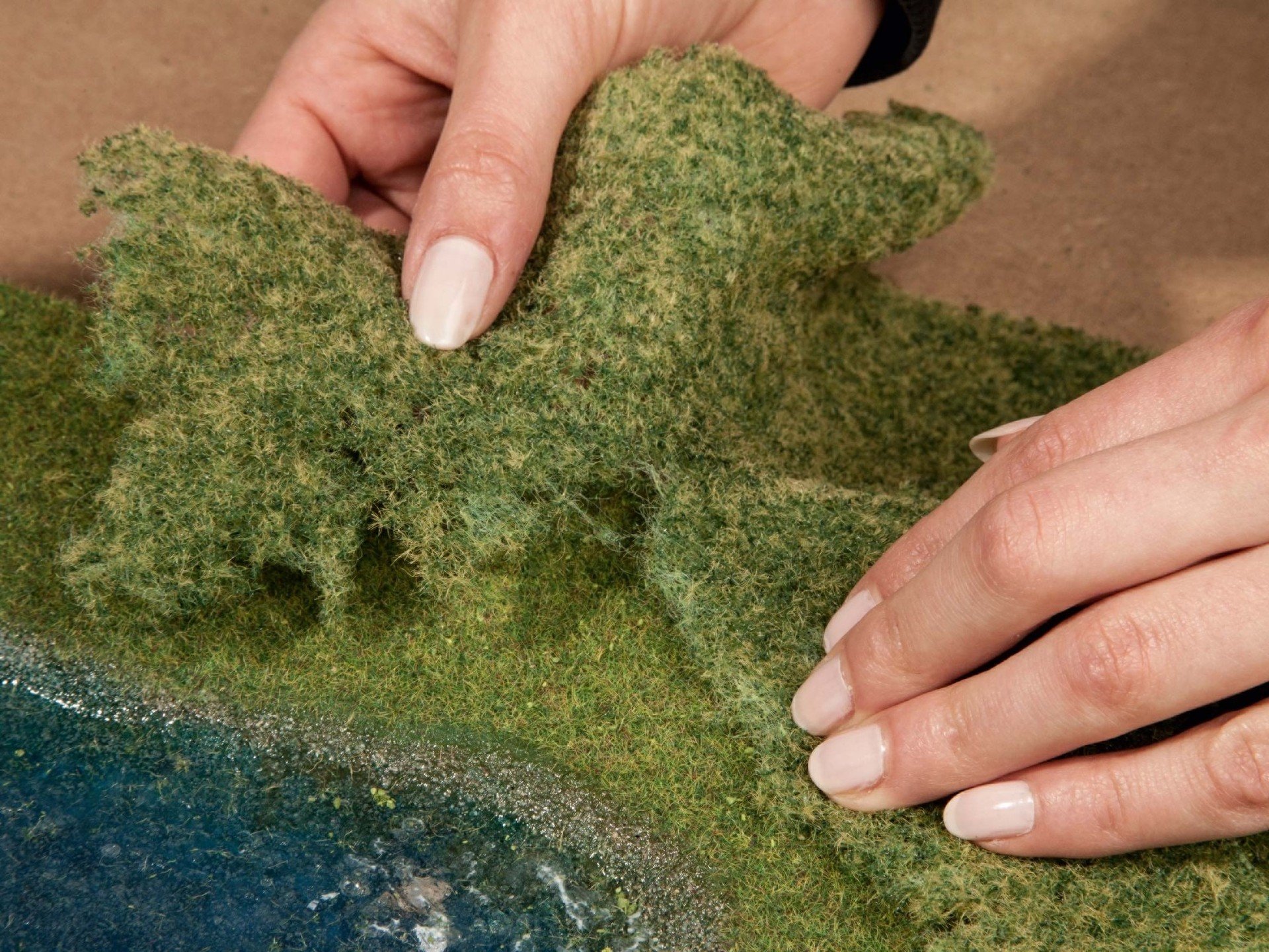 - Klassische Foliage: Die »klassische« Foliage wird mit einem feinen, natürlich koloriertem Flock beflockt. Sie eignet sich perfekt zur Gestaltung von Bodendeckern, Bemoosung und niedrigem Bewuchs. Wir empfehlen den Einsatz der klassischen Foliage insbesondere, um eintönig wirkende Gründflächen realistischer zu gestalten und aufzulockern.