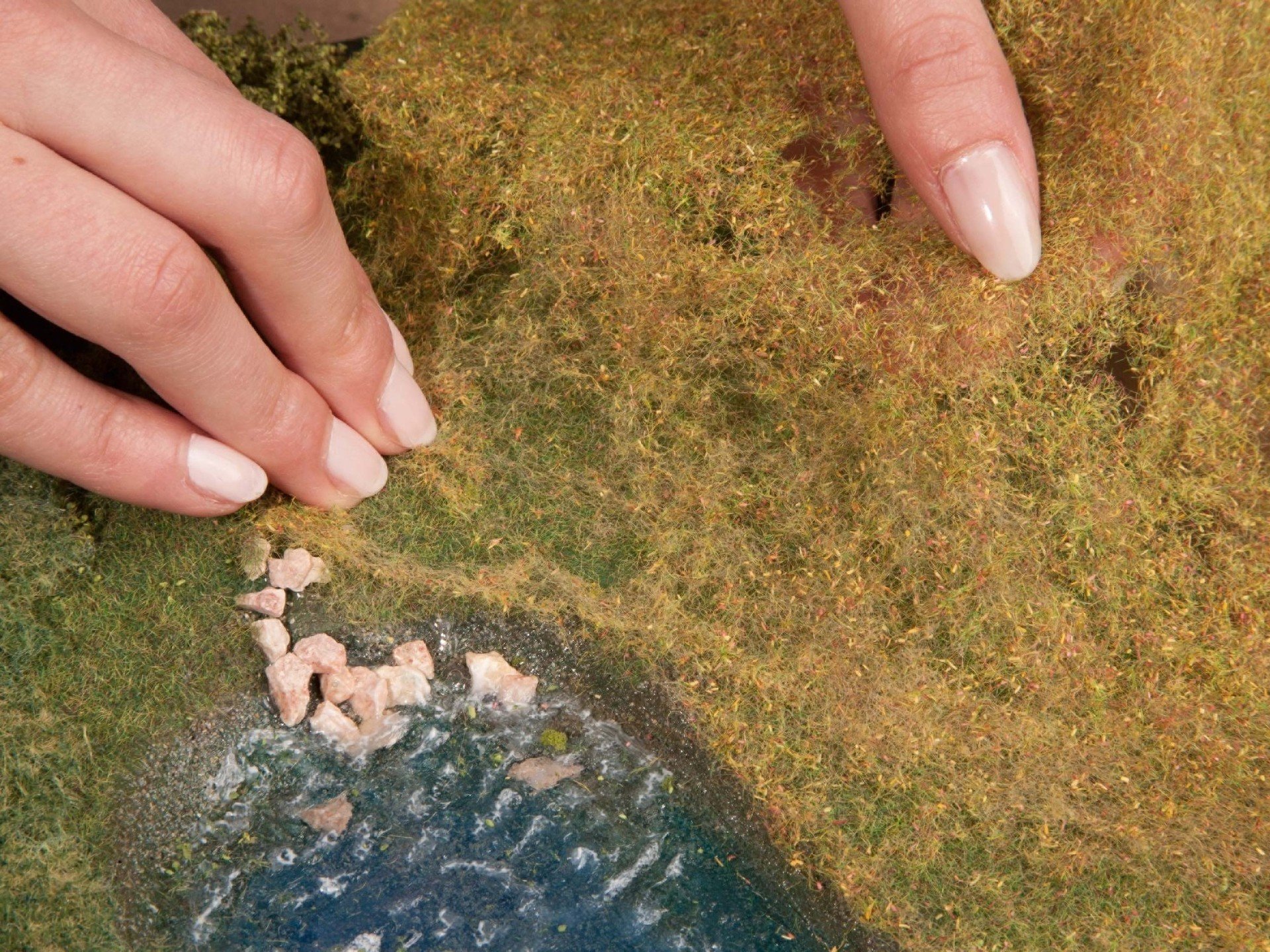 - Wildgras-Foliage: Die Wildgras-Foliage entsteht durch elektrostatische Beflockung. Dabei werden verschiedene Gräser und Flocken kombiniert. Die Wildgras-Foliage eignet sich ideal um realistischen Graswuchs auf Naturwiesen, an Waldrändern, Flussufern oder Seen zu gestalten.