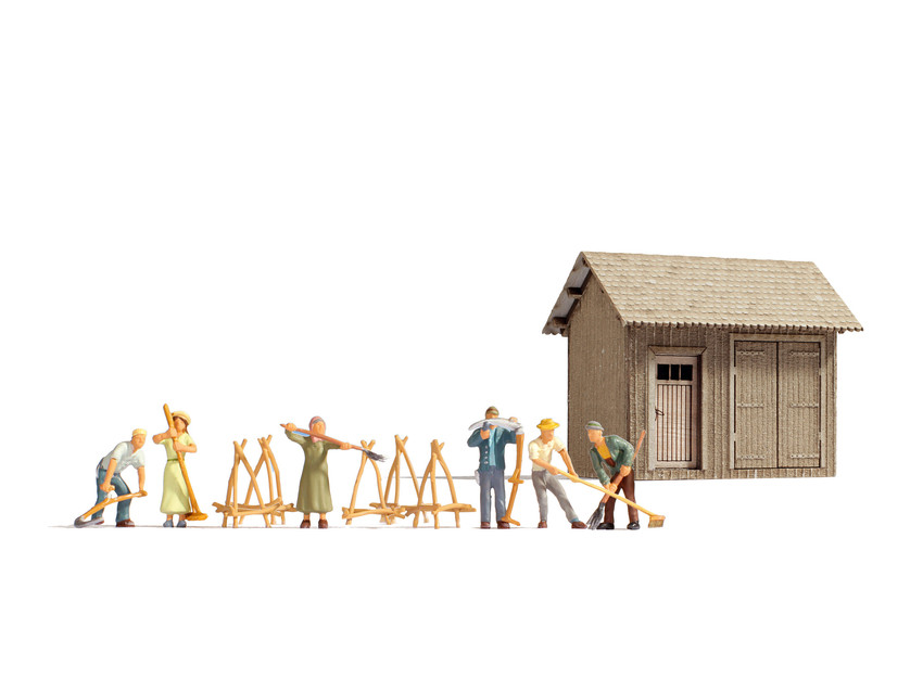 Jede Deko-Szene besteht aus einem fertig aufgebauten Laser-Cut Modell und den passenden Figuren.