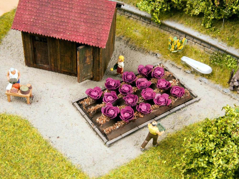 Egal ob Strauchtomaten, Blumenkoh, Weiß- oder Rotkohl, mit den Deko-Minis »zaubern« Sie im Handumdrehen realistische Beete und Schrebergärten.