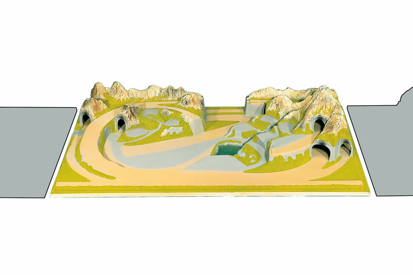 Das Fertiggelände Mittenwald ist ein Spitzenmodell im NOCH Programm, das seinen alpinen Charakter durch ein eindrucksvolles Bergmassiv auf der rechten Seite erhält.
