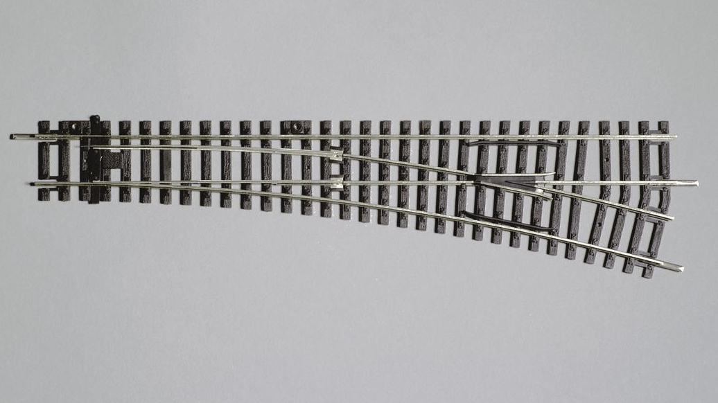 Weiche, rechts, Winkel = 15 grad, Gerades Gleis = G239, Abzweigung = R9, Handbetrieb mit Positionierung, passender Elektroantrieb = # 55271