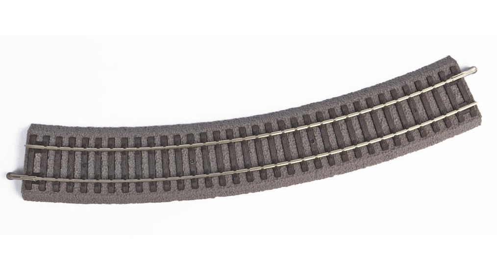 PIKO A-Gleis mit Bettung, feindetaillierten Schwellen und realistischer, scharfkantiger Schotternachbildung und Farbgestaltung. Bogen R3 Radius 484 mm.