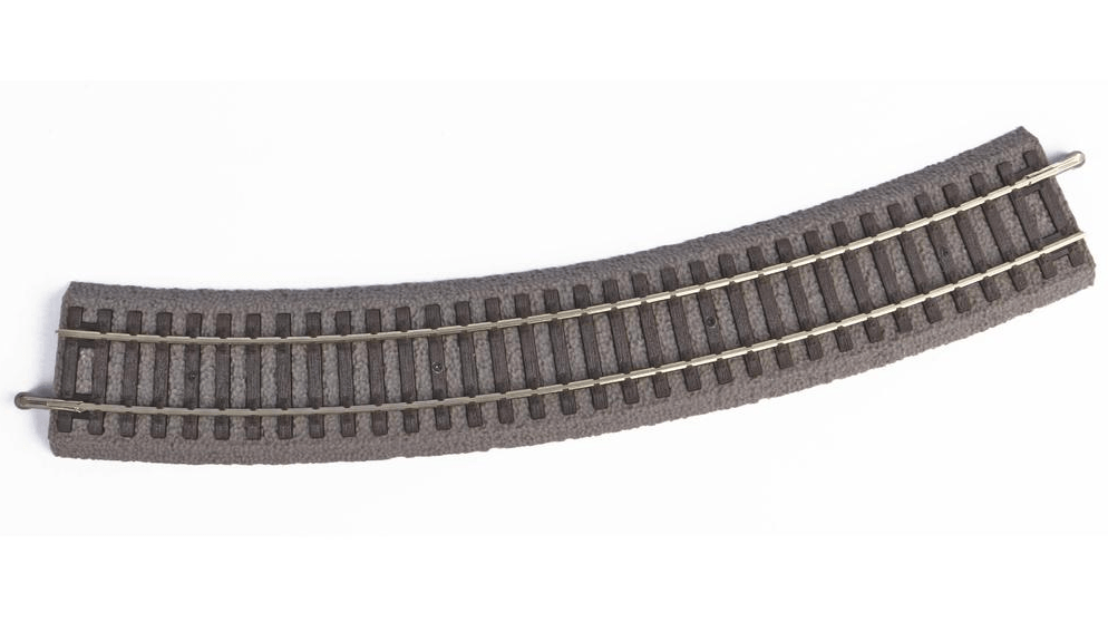 PIKO A-Gleis mit Bettung, feindetaillierten Schwellen und realistischer, scharfkantiger Schotternachbildung und Farbgestaltung. Bogen R4 Radius 546 mm.