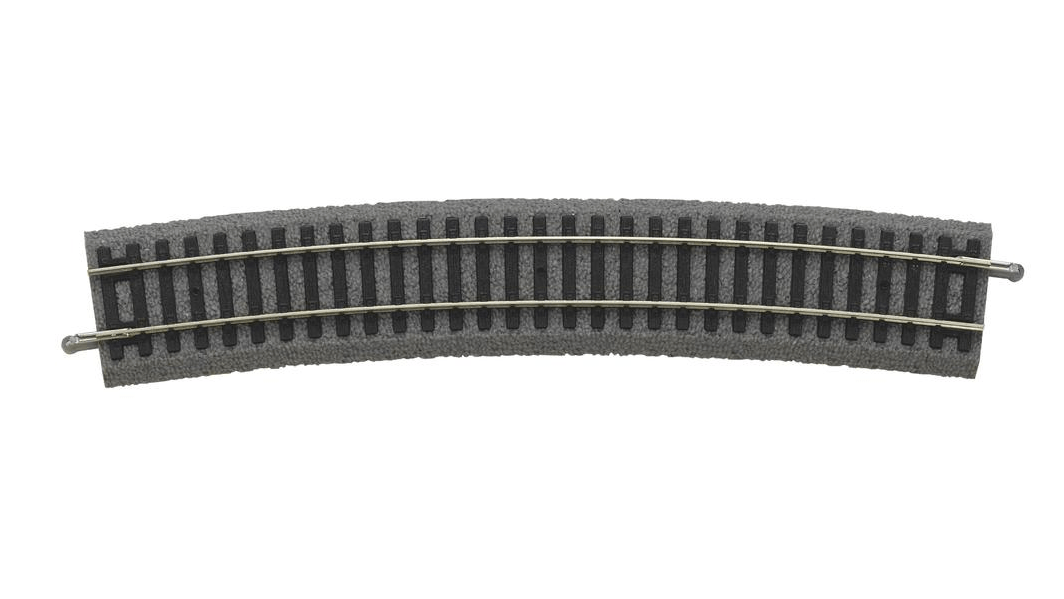 PIKO A-Gleis mit Bettung, feindetaillierten Schwellen und realistischer, scharfkantiger Schotternachbildung und Farbgestaltung. Bogen R9 Radius 908mm. Weichen-Gegenbogen.