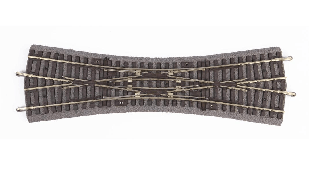 PIKO A-Gleis mit Bettung, feindetaillierten Schwellen und realistischer, scharfkantiger Schotternachbildung und Farbgestaltung. Doppelte-Kreuzungsweiche. Handbetrieb mit Positionierung, passende Elektroantriebe = # 55271.