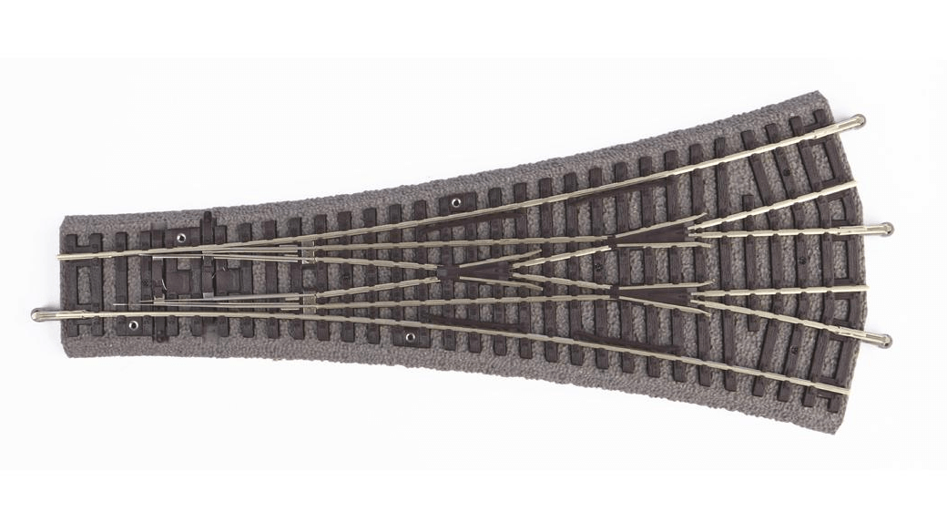PIKO A-Gleis mit Bettung, feindetaillierten Schwellen und realistischer, scharfkantiger Schotternachbildung und Farbgestaltung. Dreiwege-Weiche mit jeweils 15° Abzweigungen Handbetrieb mit Positionierung, passender Elektroantrieb = # 55271.