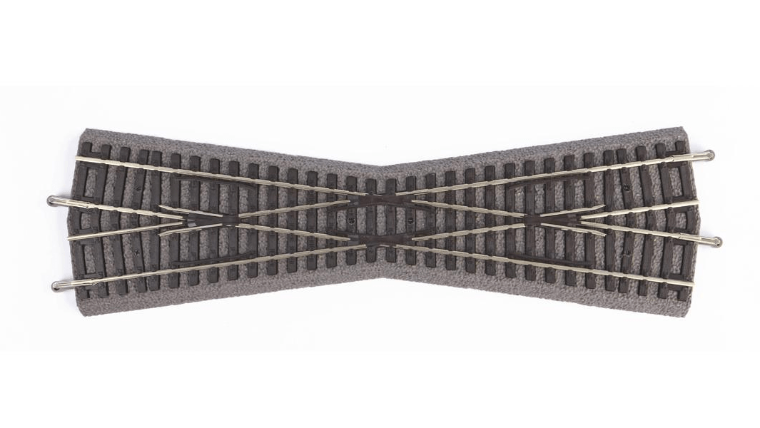 PIKO A-Gleis mit Bettung, feindetaillierten Schwellen und realistischer, scharfkantiger Schotternachbildung und Farbgestaltung. Kreuzung K15, 15°