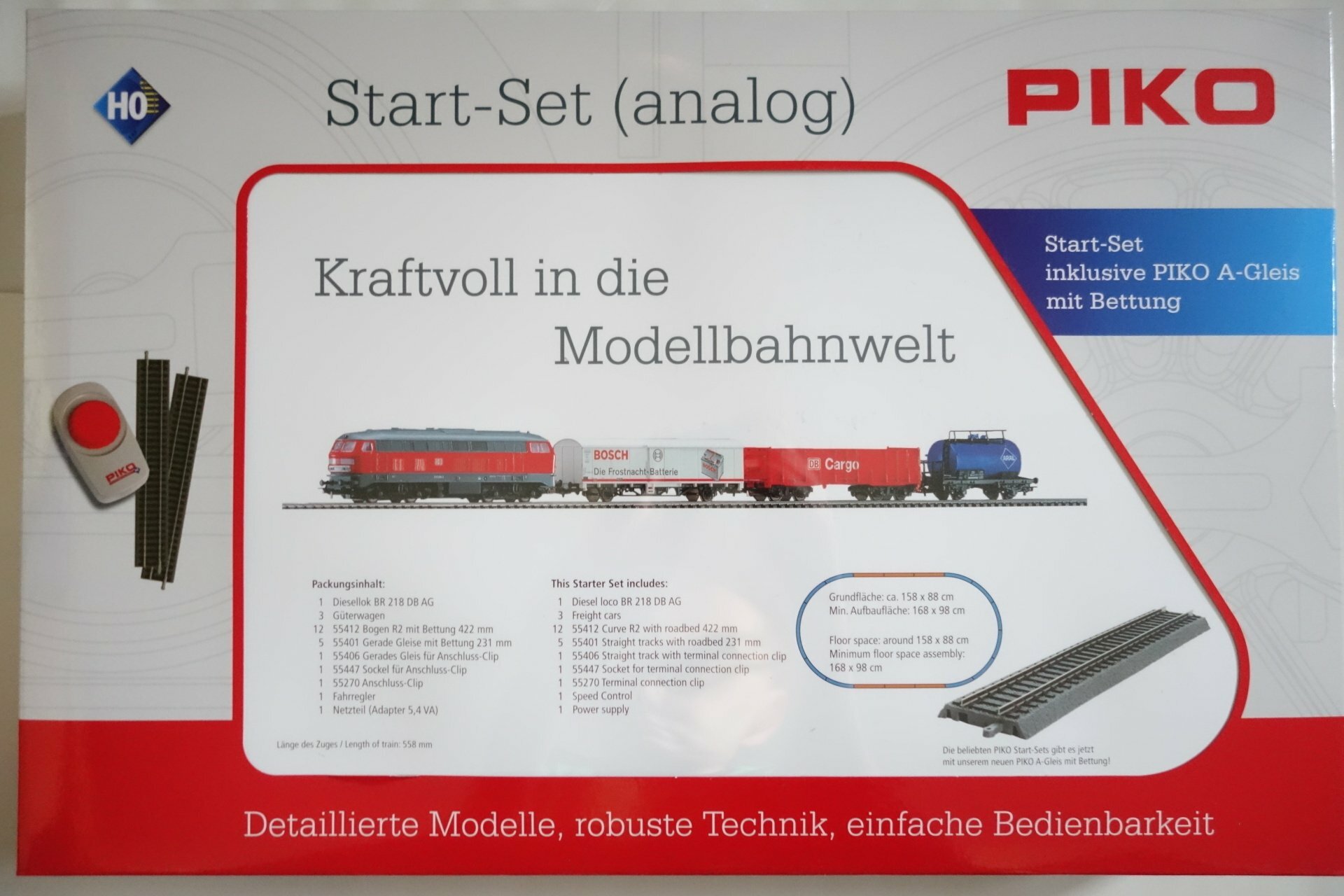 Start-Set BR 218 mit 3 Güterwagen mit Bettungsgleis