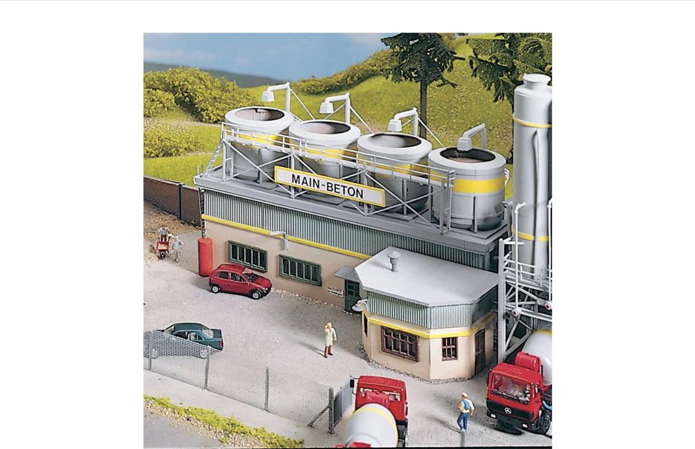 Das Ziel vieler Modellbahner: Endlich ein Betonwerk für die PIKO-Zementsilowagen! Mit dem H0-Bausatz nach dem Vor-bild der Firma Main-Beton geht dieser Wunsch in Erfüllung. Die Bauten der Mischanlage bilden das technologische Herzstück dieses spezialisierten Bereichs der Baustoffproduktion.