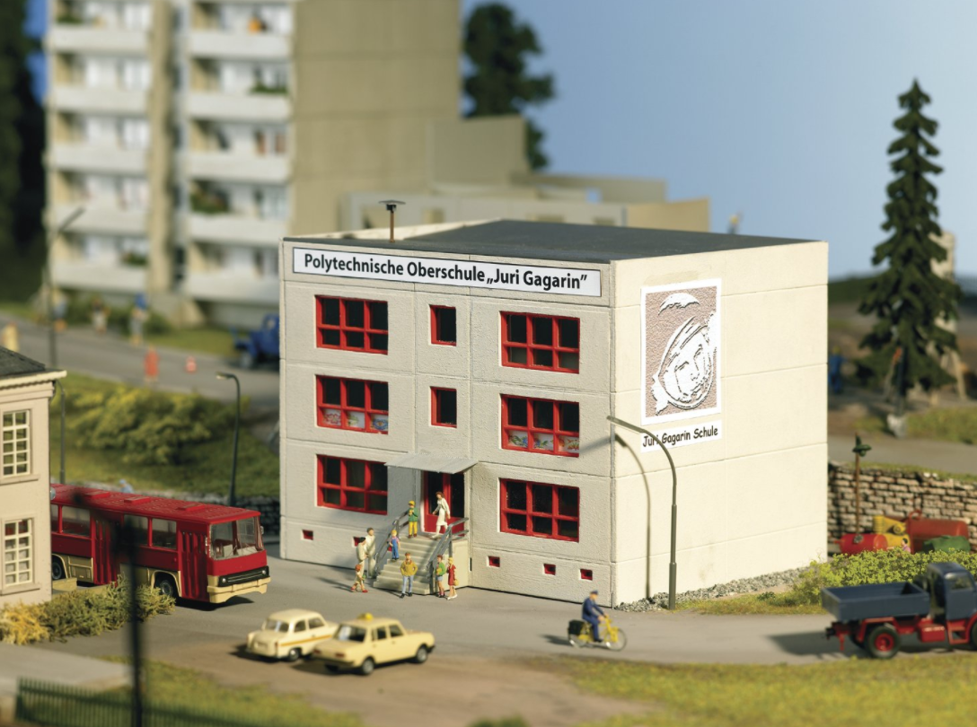 Die Plattenbau-Siedlung erhält jetzt das passende dreistöckige Schulgebäude, wie es auch heute noch in den typischen Stadtteilen größerer Städte zu finden ist.