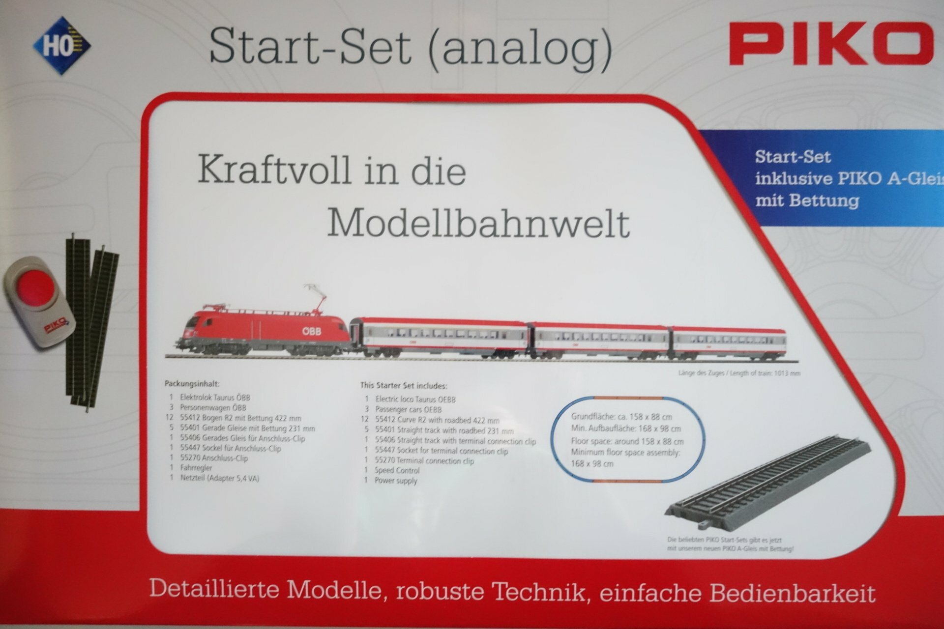Start-Set mit einer modernen Siemens-Elektrolok, bekannt als Taurus der ÖBB, und drei Intercity-Personenwagen.
